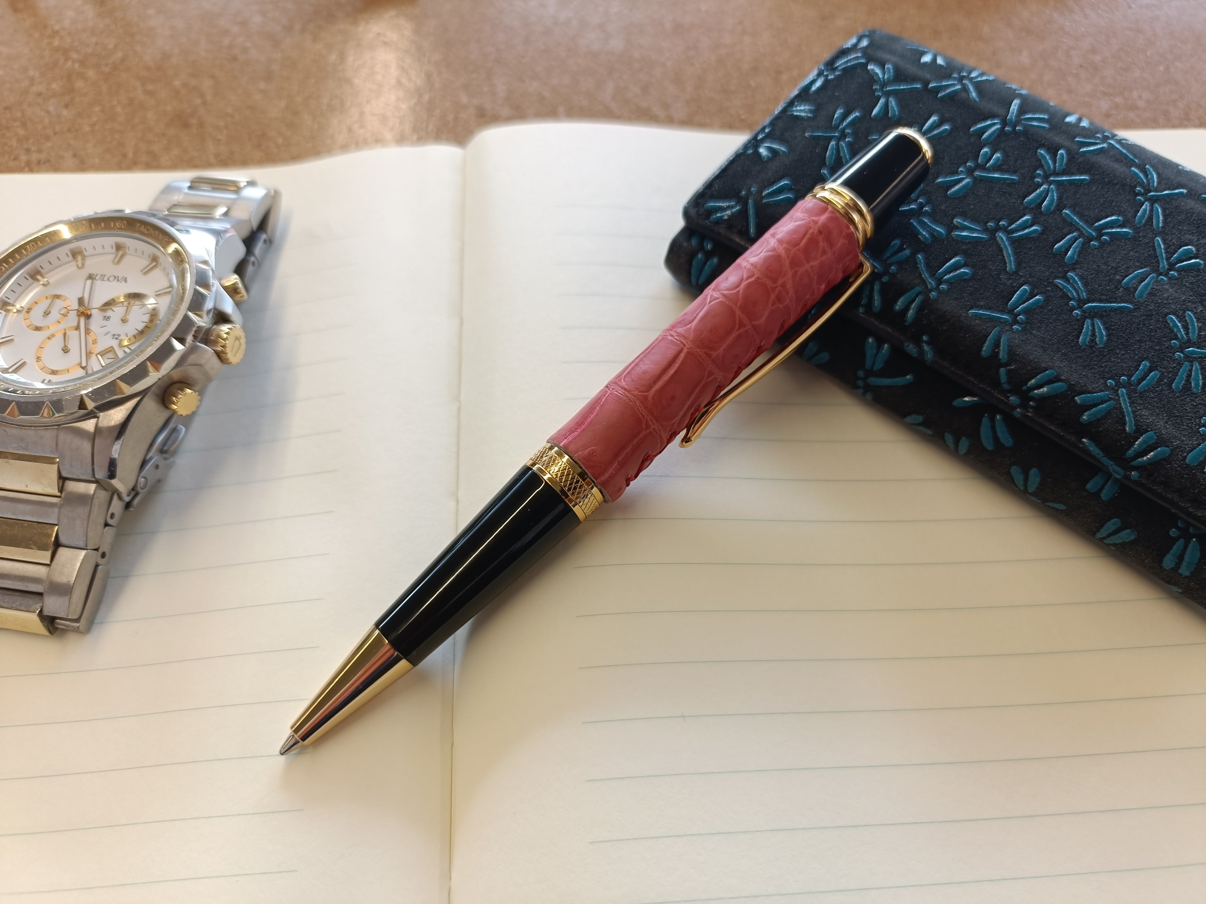 [京都美山の大地が育んだ 幻の日本茜が織りなす クロコダイルレザーペン]