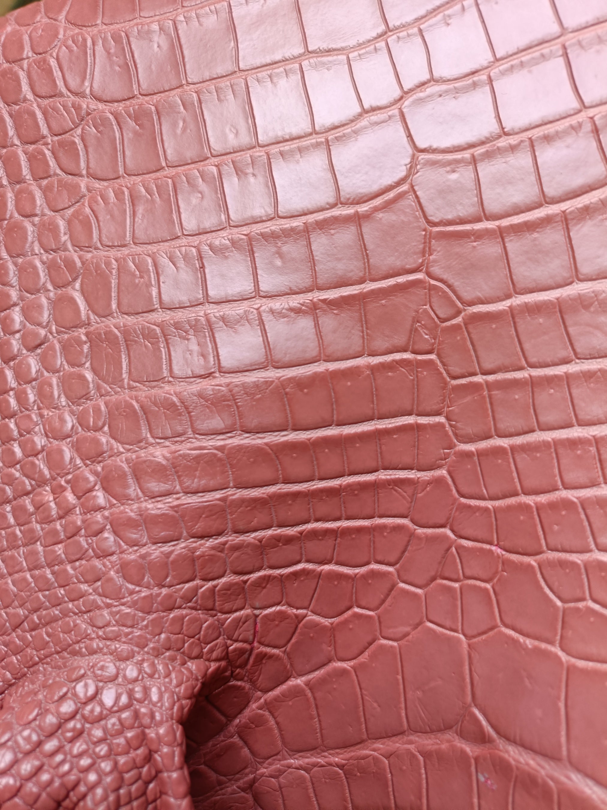 スイスの高級時計にも使われているワニ革を使用し手になじみやすく、使い込むほどに目に見えて色合いと艶が増す特徴がございます。