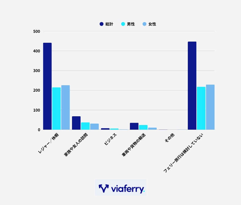 世界中でフェリーのオンラインチケット販売をするViaferryは、日本でのサービス開始を見据え、日本人旅行者を対象にした2回のアンケート調査を実施しました。調査対象は一般の回答者1,000名と、フェリー利用経験者100名です。本調査では、国内のフェリー利用に関する男女の意外な傾向が明らかになりました。