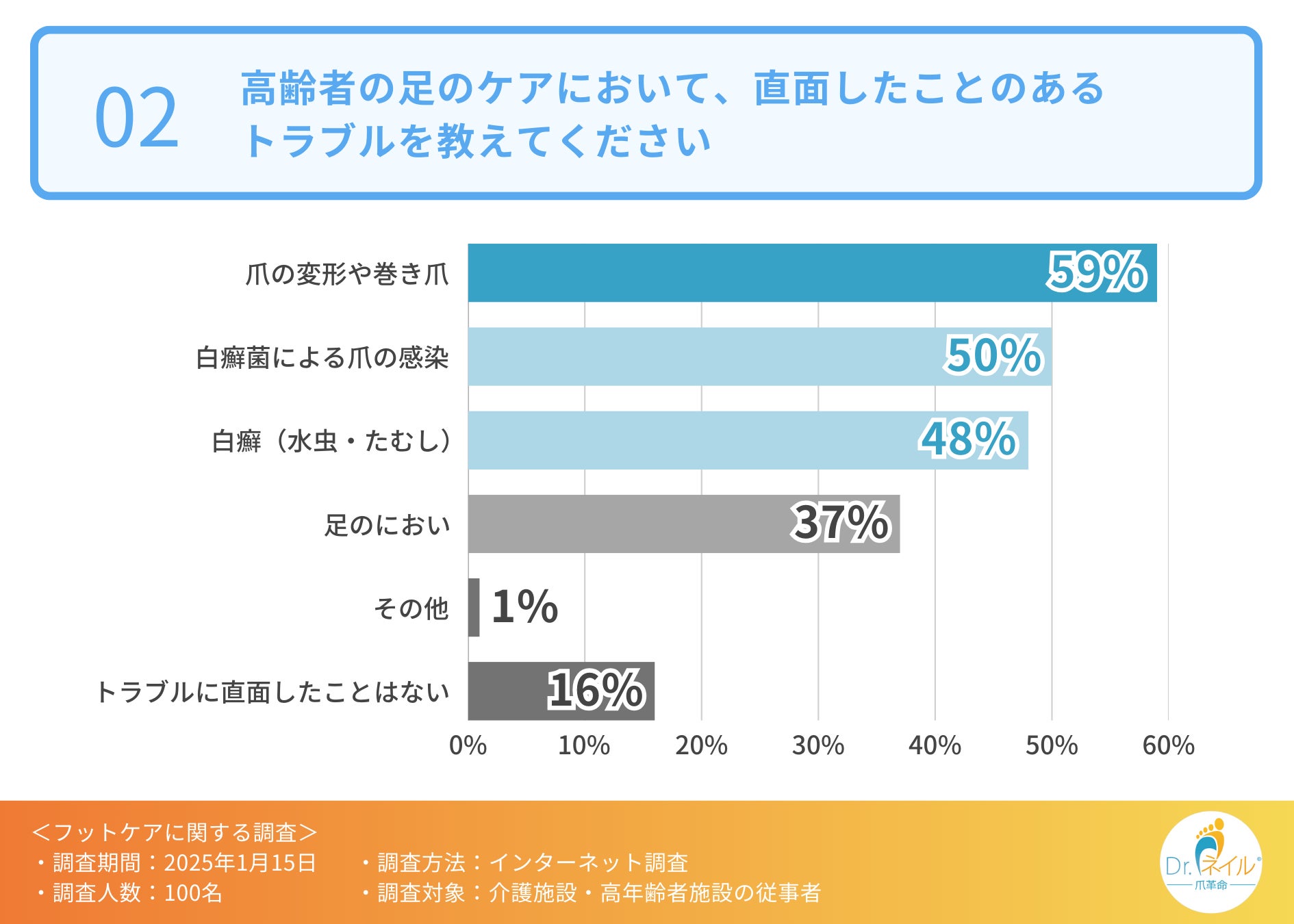 では、高齢者の足のケアにおいて、直面したことのあるトラブルにはどのようなものがあるのでしょうか?