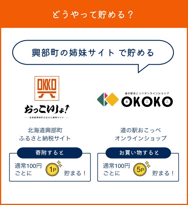 北海道興部(おこっぺ)町にある一般社団法人おこっぺ町観光協会は、運営サイト”道の駅おこっぺオンラインショップ『OKOKO』 https://okoppe-hokkaido.jp/ ”と興部(おこっぺ)町”公式ふるさと納税サイト『おっこいしょ!』 https://furusato.okoppe-hokkaido.jp/ ”の会員に対して展開しているポイント制度『おかわりポイント』を共通ポイントとして付与している。