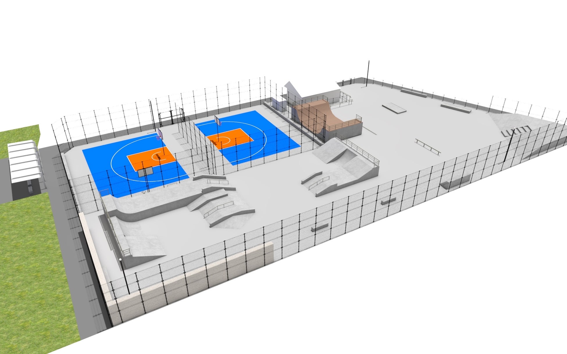 3×3バスケットコートを楽しむことのできる施設です。2面のコートを備え、ゴールは背中合わせに配置しています。