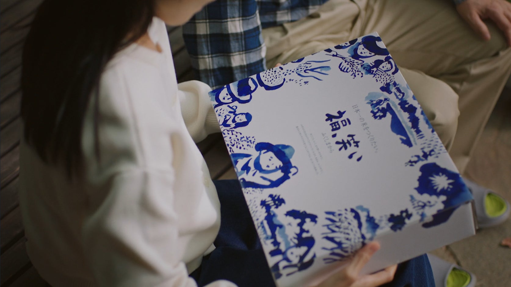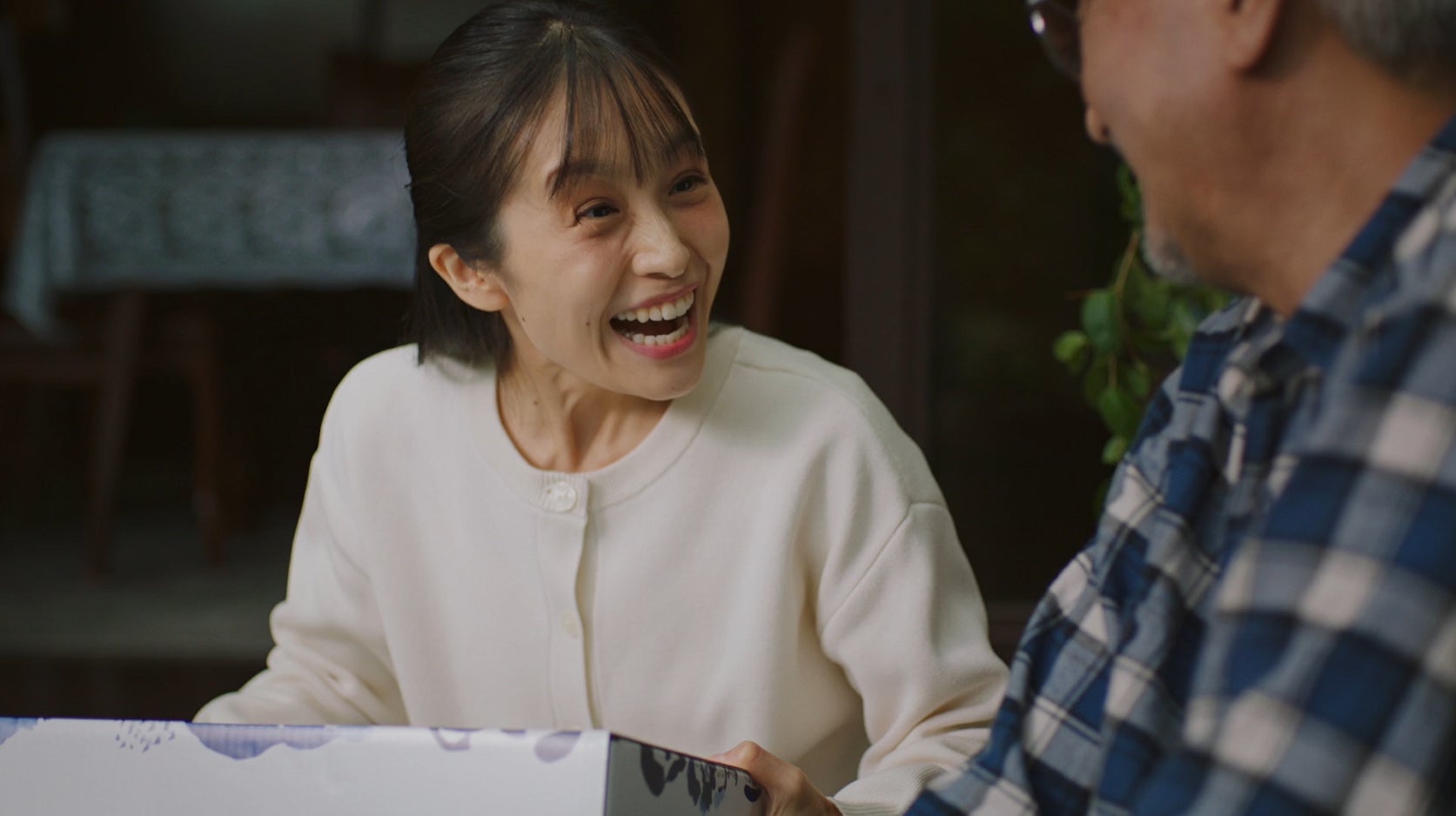 2024年12月9日(月)に公開された「女子大学生篇」は、一人暮らしを始めて8カ月の女子大学生のひとコマ。一人暮らしを始め、実家の大切さに気づいた主人公は、帰省の際、「福、笑い」を贈ることで普段両親に言葉で伝えられない感謝を表現しています。家族でおにぎりを食べるシーンが印象的です。