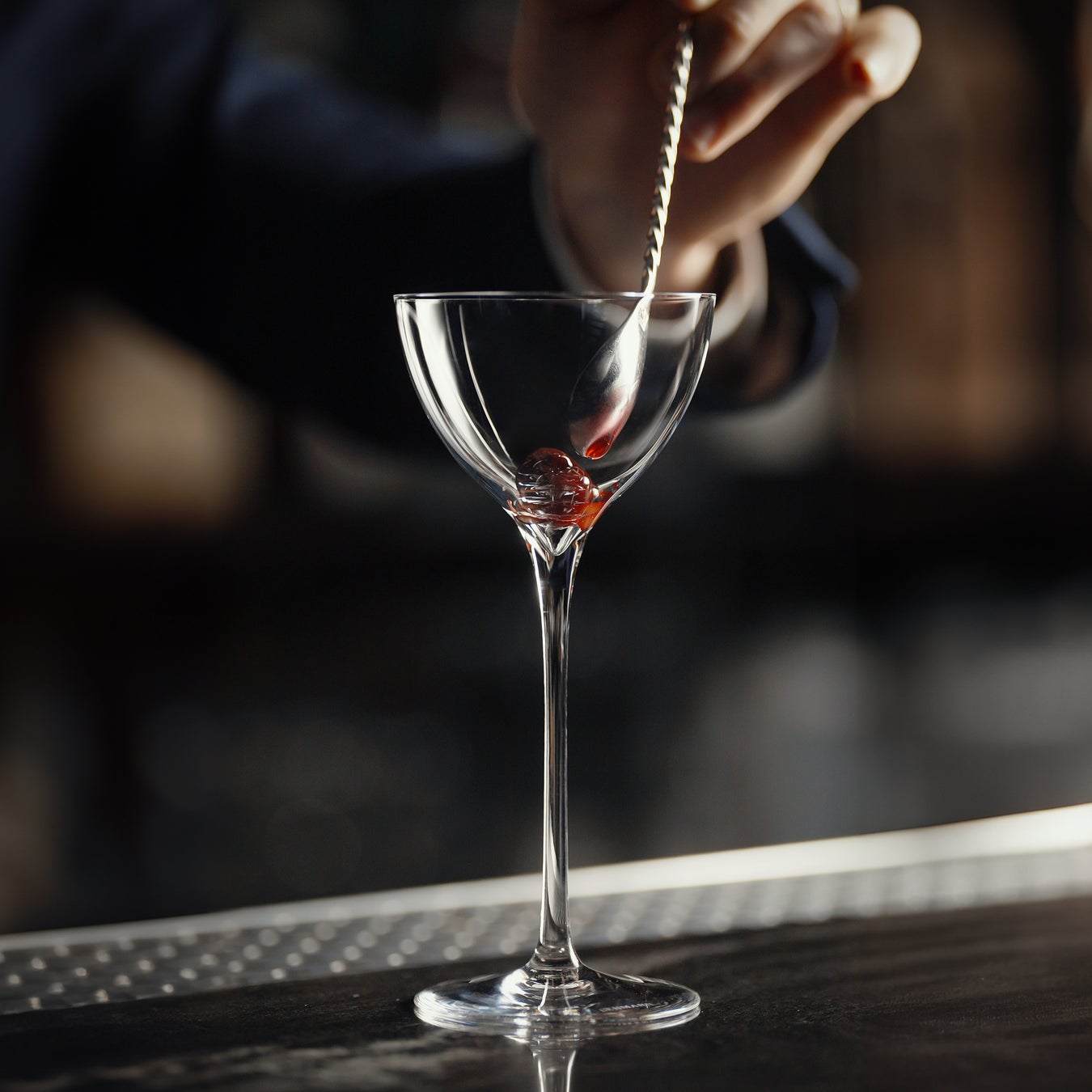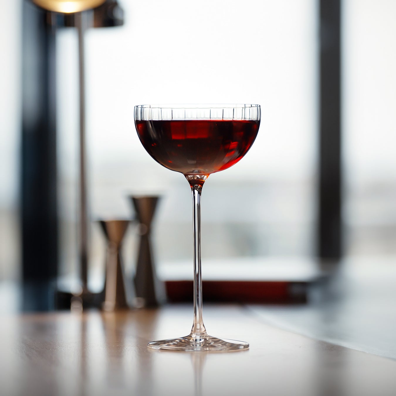 ニューヨークは、象徴的な「ニック&ノラ」ステムグラスのシルエットをモダンで洗練された形に再解釈したデザイン。繊細でエレガントなフォルムが、クラシックカクテルをはじめてとする一杯をさらに引き立て、特別なひとときを演出します。「マンハッタン」