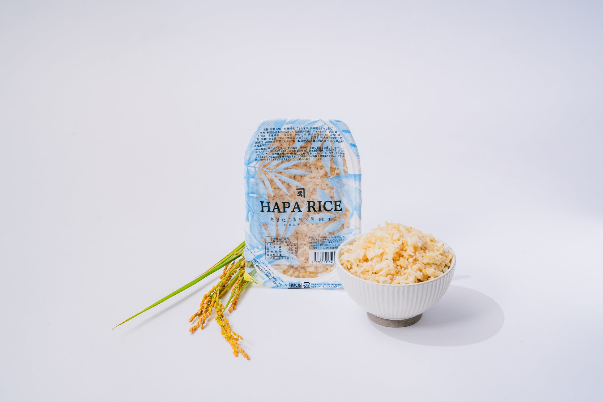 私たちが栽培するあきたこまちの玄米を使用したこちらのパックごはんは、健康志向の消費者をターゲットに、秋田県産の乳酸菌栽培した酵素あきたこまち玄米と秋田県産特A地区の一等米あきたこまちの白米をブレンド。さらに乳酸菌パウダーを入れて炊くことで、玄米特有の「ぬか臭さ」がなくなり、食感も「もちもち感」が増して食べやすくなります。玄米と白米は、炊飯時間が異なるため、ブレンドが非常に難しいものの、創業1860年つづくの米穀業者のノウハウにより、一緒に味を楽しめる商品にしました。玄米には興味があるものの、匂いや食感が気になる消費者も非常に食べやすく、玄米食の導入にぴったりの商品です。乳酸菌の効能により、安眠効果で注目されているGABA(γ-アミノ酸路)が通常の白米の6倍に増幅し、免疫向上のほか、アトピーや美肌効果のあるクラビス乳酸菌によって様々な効果も期待されます。