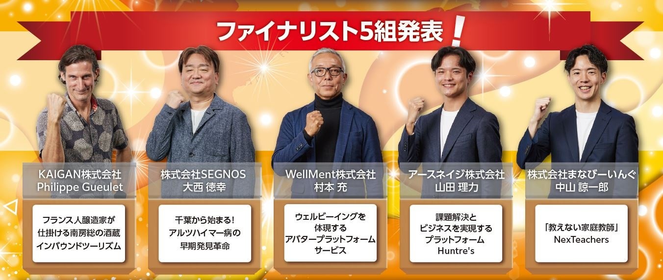CHIBAビジコン2024は本年度で10回目を迎え、千葉県の活性化や課題解決につながるビジネスプランを広く募集し、2次審査を突破したファイナリスト5組が2025年1月20日幕張メッセの舞台で最終プレゼンテーションを行いました。株式会社まなびーいんぐは「教えない家庭教師」NexTeachersをビジネスプランとして紹介し、「ちば起業家大賞」をいただく事ができ、教育業界を大きく変えていくための一歩をまた踏み出す事ができました。