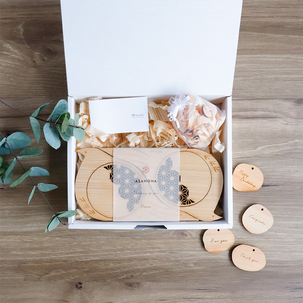 また、贈るシチュエーションに合わせて、ギフトボックスに木製のメッセージタグ「For you」「Thank You」「Congrats」「Happy Birthday」の4種類から1つお選び頂けます。