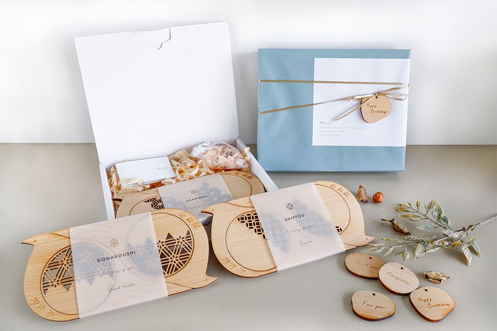本ギフトセットでは、和の趣を感じる3種類のデザインをご用意しました。繊細なレーザー加工により、伝統的な和柄を美しく表現。それぞれ異なるパターンが施されており、贈る相手やシーンに合わせて選べます。