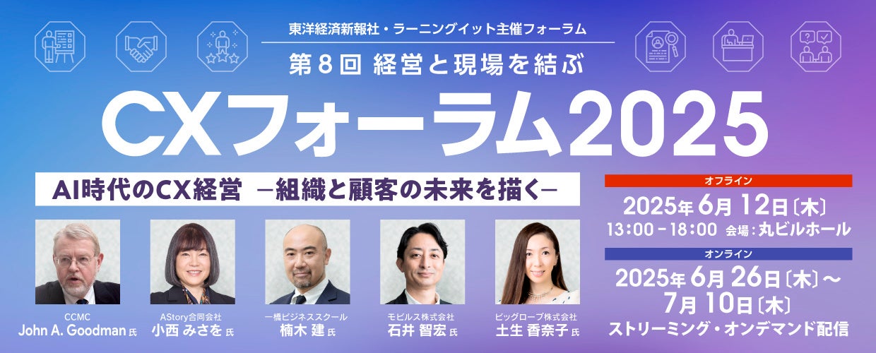 株式会社ラーニングイットは、2025年6月12日(木)13:00より丸ビルホール(東京都千代田区)にて、東洋経済新報社とともに『第8回会 経営と現場を結ぶ CXフォーラム2025』を開催することをお知らせ致します。