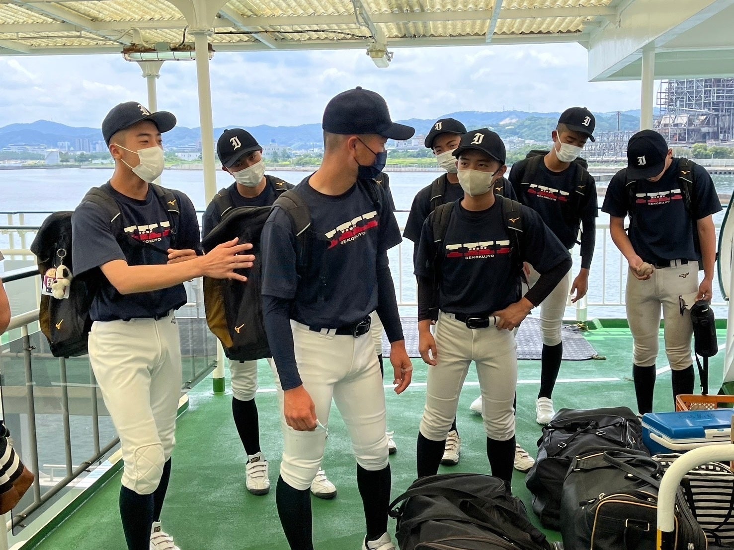 練習試合や公式戦の度に、一日数便しかないフェリーに1時間半乗り、さらにバス移動で1時間以上かけて行きます。
