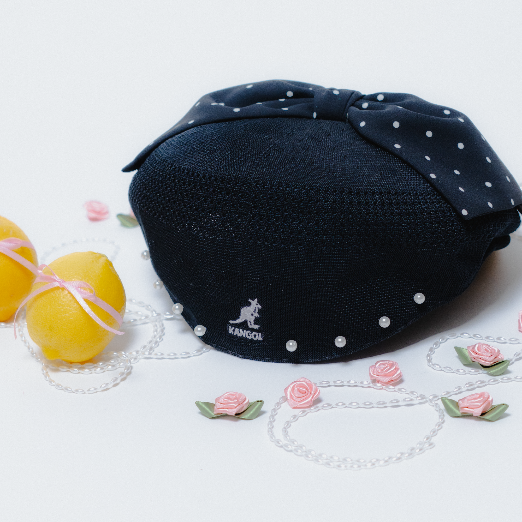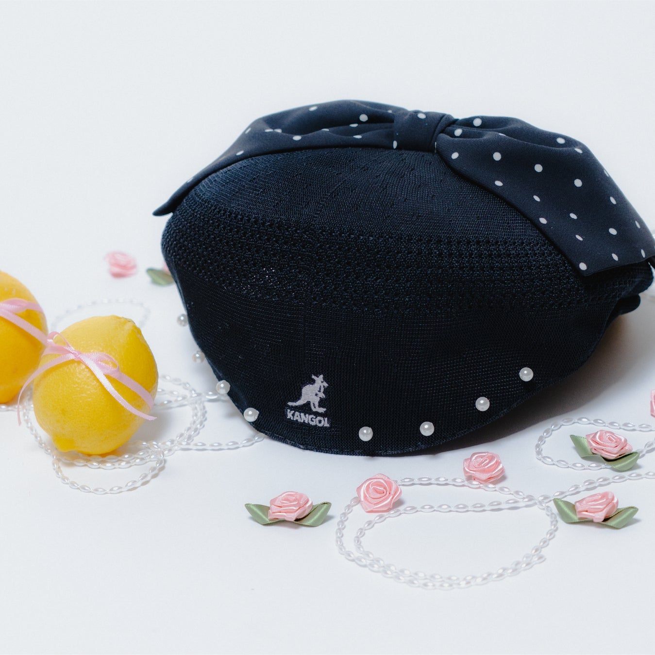 KANGOLの定番「TROPIC 504・ハンチング」にパールとリボンを施した、特別な別注モデルを発売。