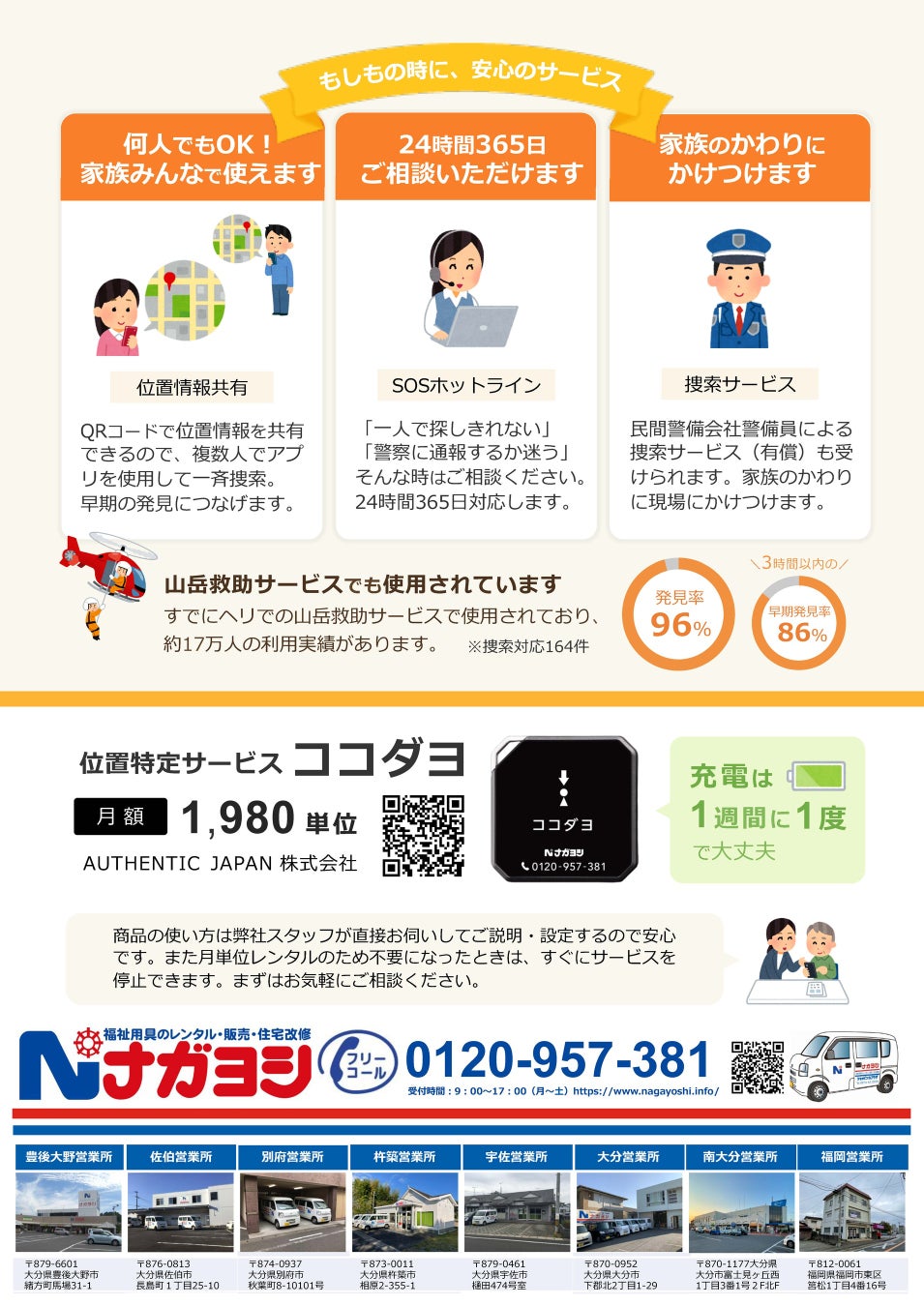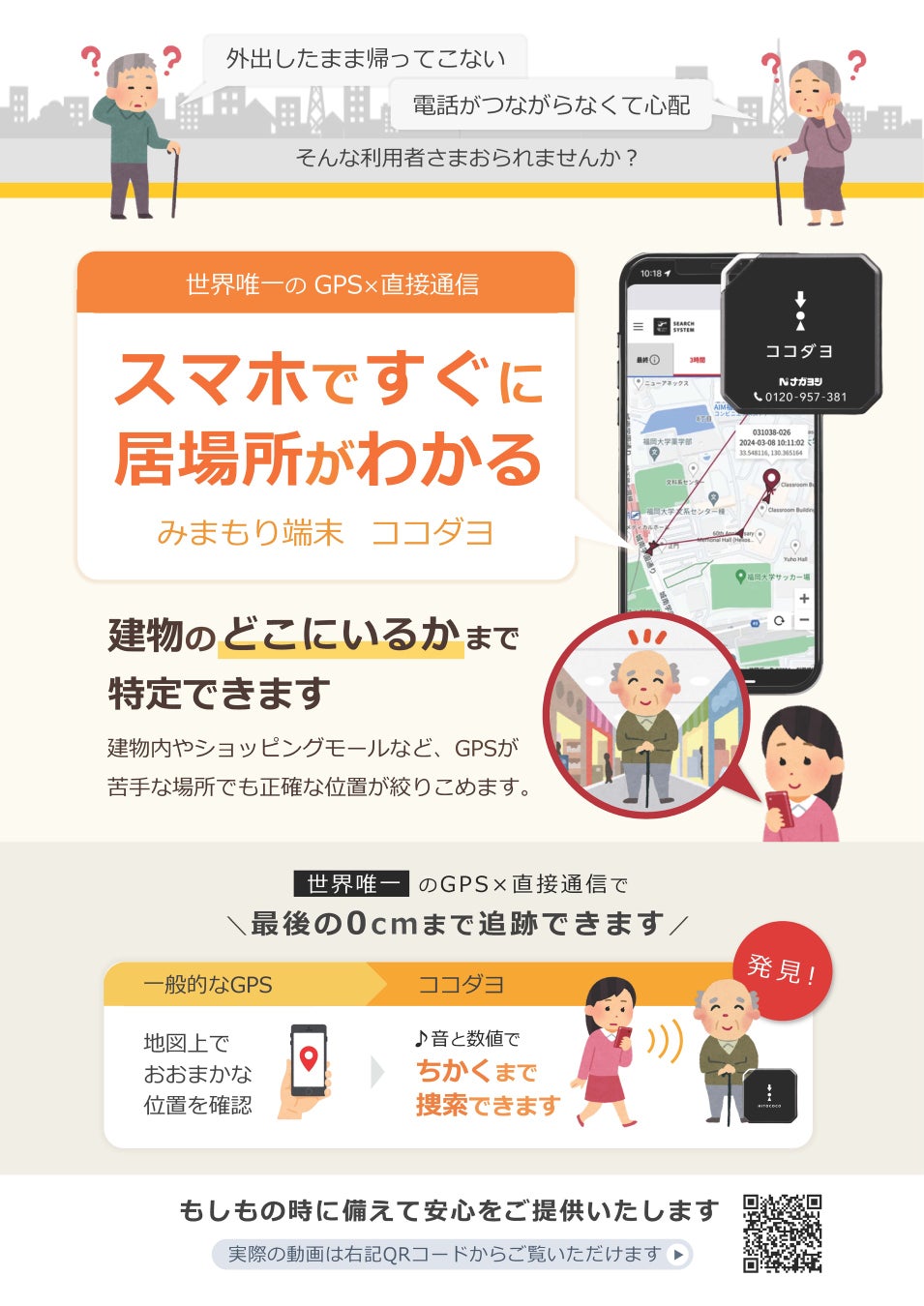株式会社ナガヨシ(本社:大分県豊後大野市緒方町、代表取締役社長:長吉友博)は、高齢者向け位置特定サービス「ココダヨ」を2025年1月20日より大分県内で正式にサービス提供を開始いたします。このサービスは、外出中や緊急時における高齢者の位置情報を家族や介護者がリアルタイムで確認できるもので、安全性を高める新たなソリューションです。