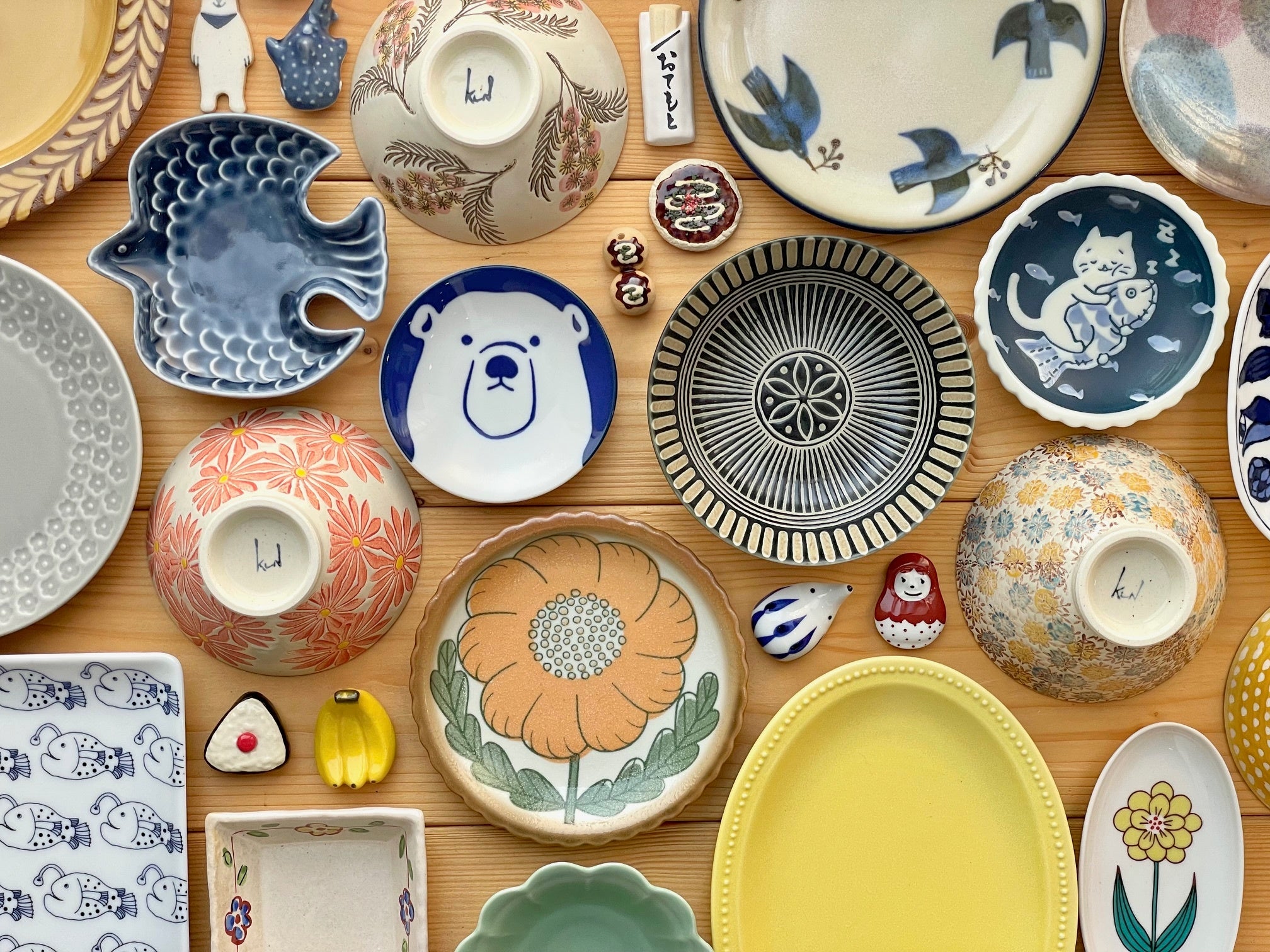 長崎県の波佐見焼(はさみやき)、岐阜県の美濃焼、石川県の九谷焼、栃木県の益子焼などの窯元より、私たちが「可愛い!」と思うものを当店では仕入れて販売しています。