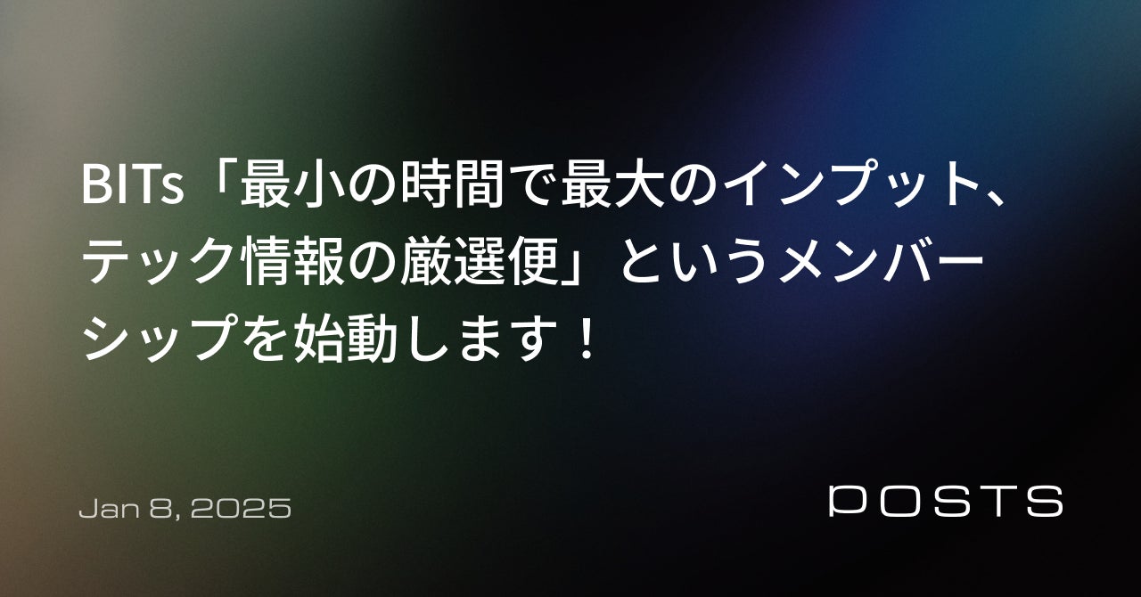 再現性のある事業成長支援と先端テクノロジー活用に強みを持つアドバイザリーサービスを提供する株式会社POSTS(代表取締役:梶谷健人)は、2025年1月8日より、厳選された最新テクノロジートレンドと実践的なビジネス活用ノウハウを提供する有料noteメンバーシップサービス BITs「最小の時間で最大のインプット、テック情報の厳選便」の提供を開始することをお知らせいたします。