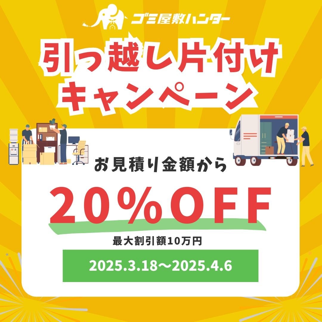 ゴミ屋敷や汚部屋から脱出を支援・片付けをする「ゴミ屋敷ハンター」を運営する、コトナス株式会社(代表、齊藤 智之)が、2025年3月18日~4月6日の間で、引っ越しに伴う片付けキャンペーンを実施します。