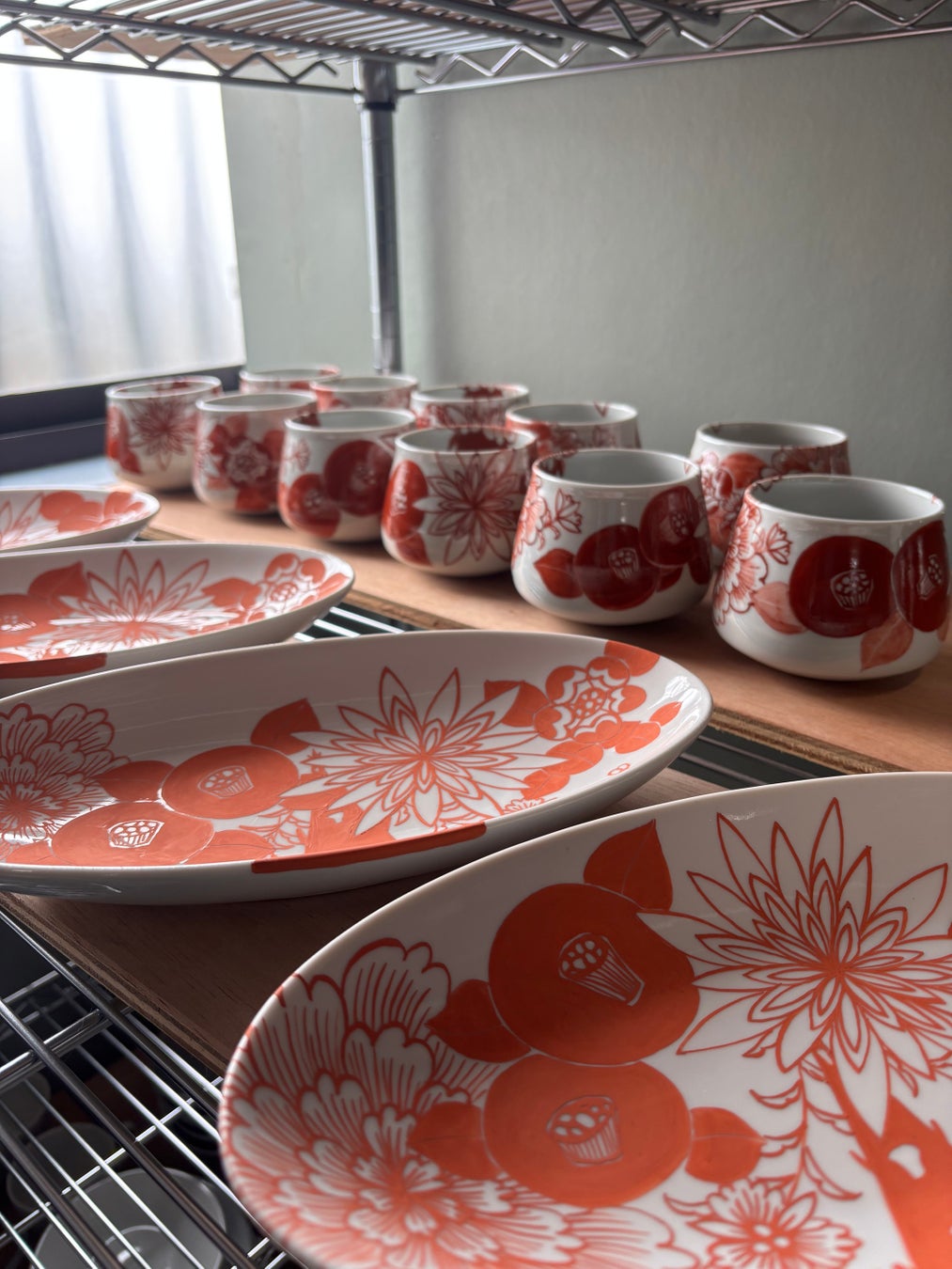 ラベルデザインをもとに、赤を基調に華やかな花尽くしの器に仕上げました。
