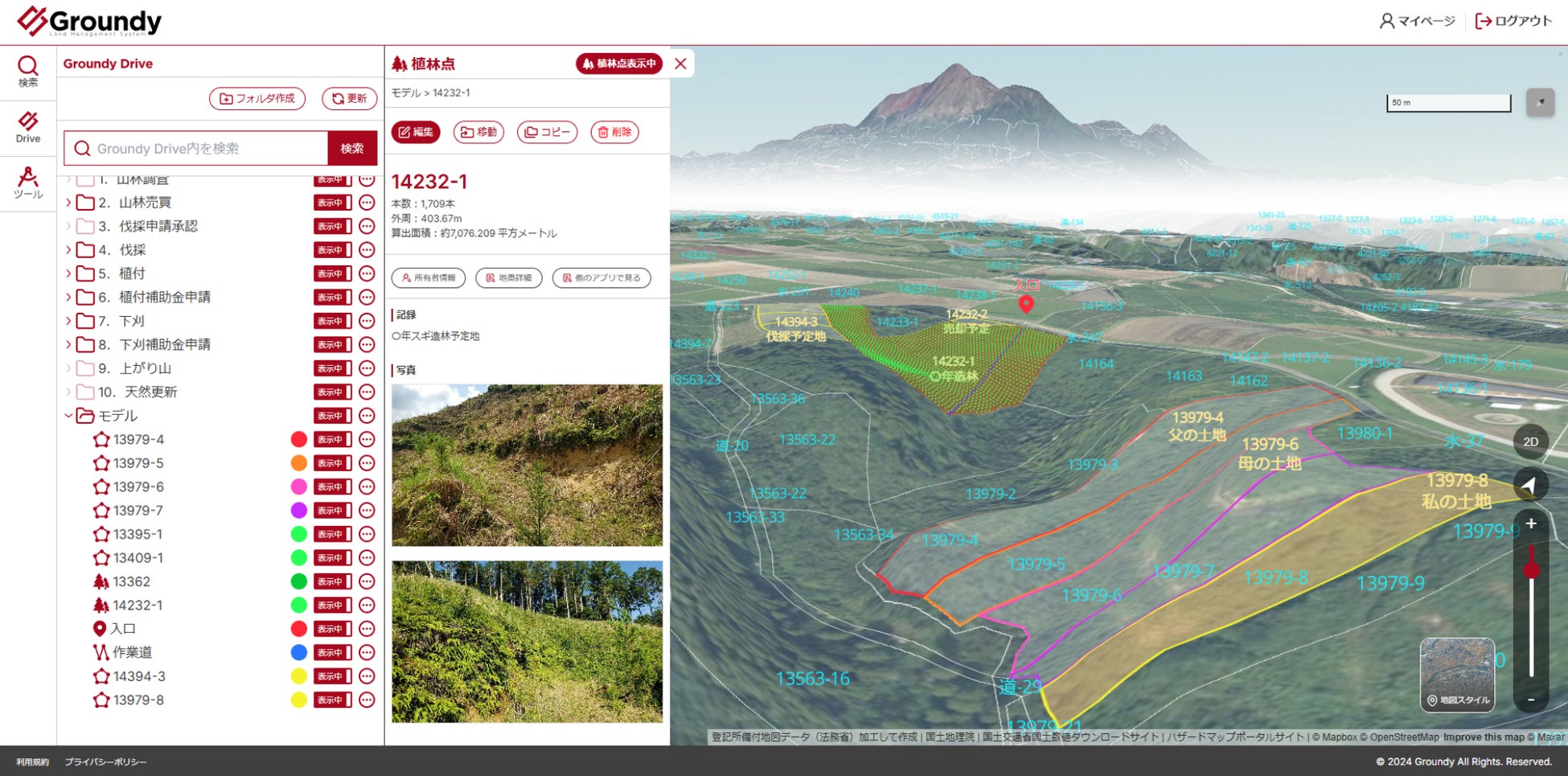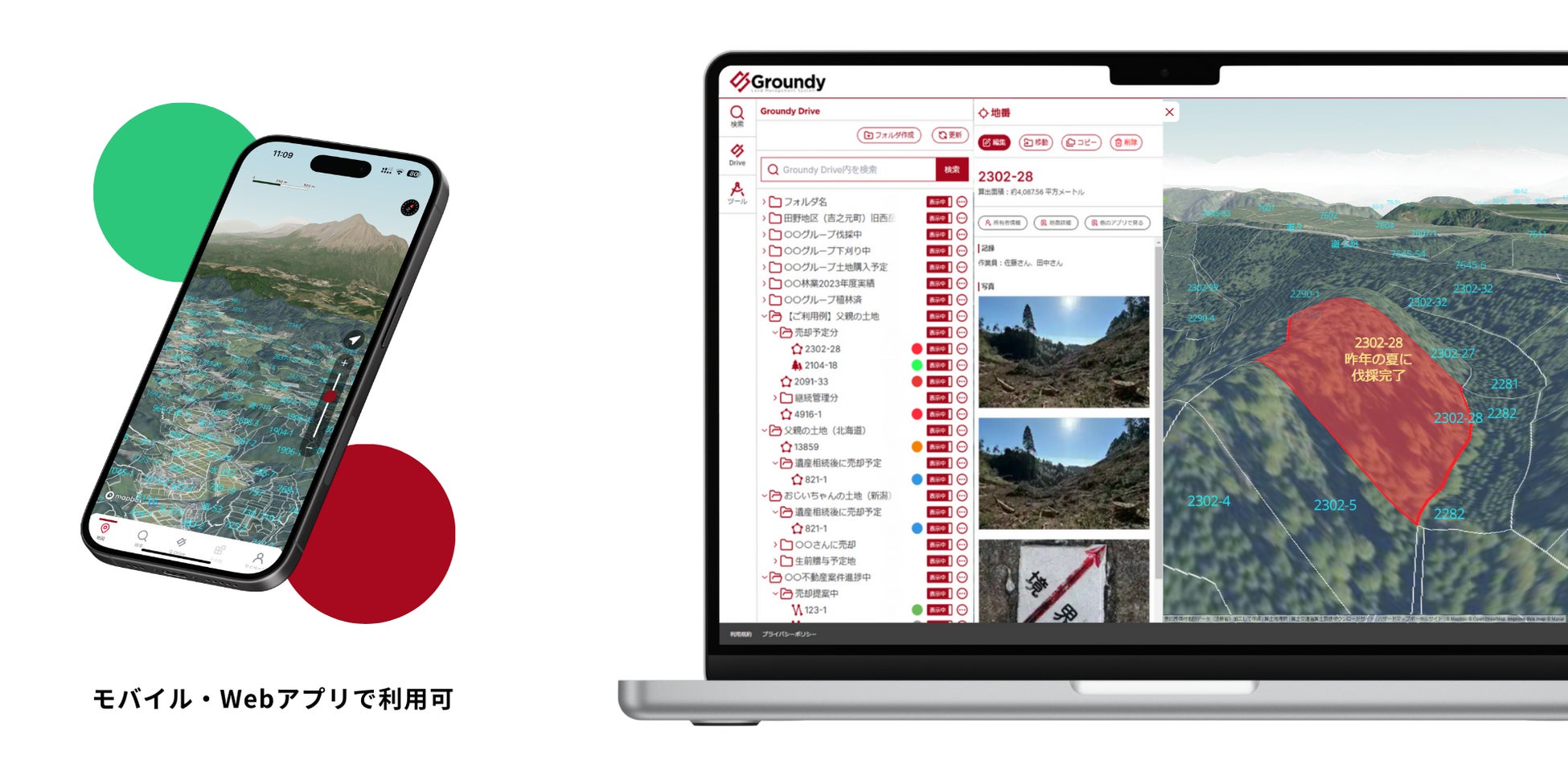 第一弾として、「地番土地管理ツール」と、「山林内での境界確認のDX化」を統合した、林業を革新できるサービスを提供しております。今、林業界のみならず、土地管理に関わる農業・不動産・士業など、様々な領域での利用も広がっています。
