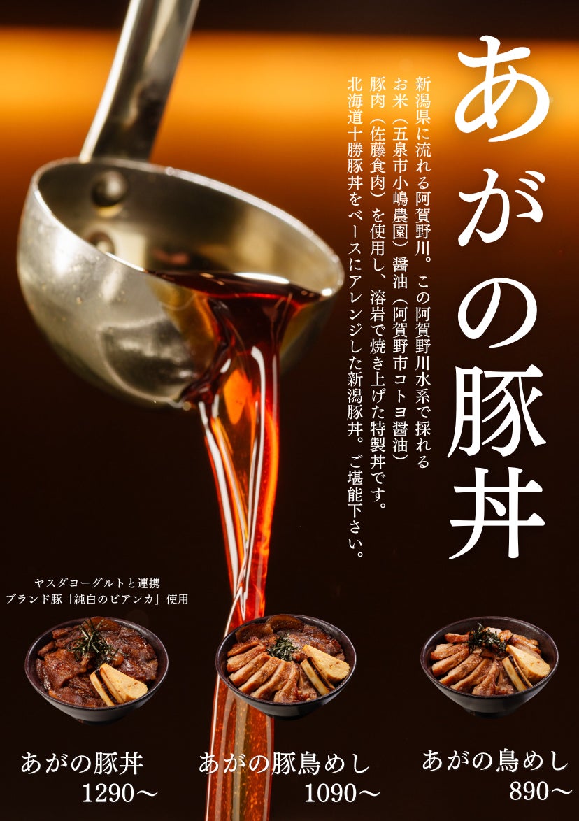 2021年2月から「さらい五泉本店」で提供を開始した “あがの豚丼” 。年間北海道の十勝豚丼をベースに、新潟県を流れる河川阿賀野川水系の食材にフォーカスして作った丼です。