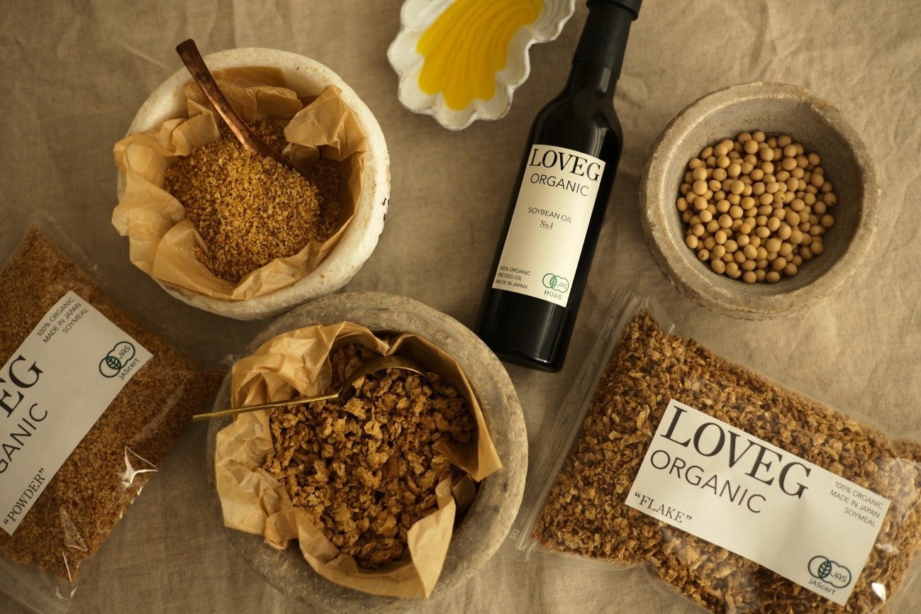 国産有機大豆を100%使用し、圧搾法で搾油した有機JAS認証の大豆油と、脱脂大豆と水のみで作られた有機JAS認証の大豆ミート。再生エネルギーを活用した自社工場で製造し、製造過程でも環境負荷を軽減している。また、有機農家の支援や土壌環境改善に貢献し、持続可能な農業の発展を支援。福祉施設との協業を通じて、社会貢献にも積極的に取り組んでおり、地球と社会に優しい食材を提供している。