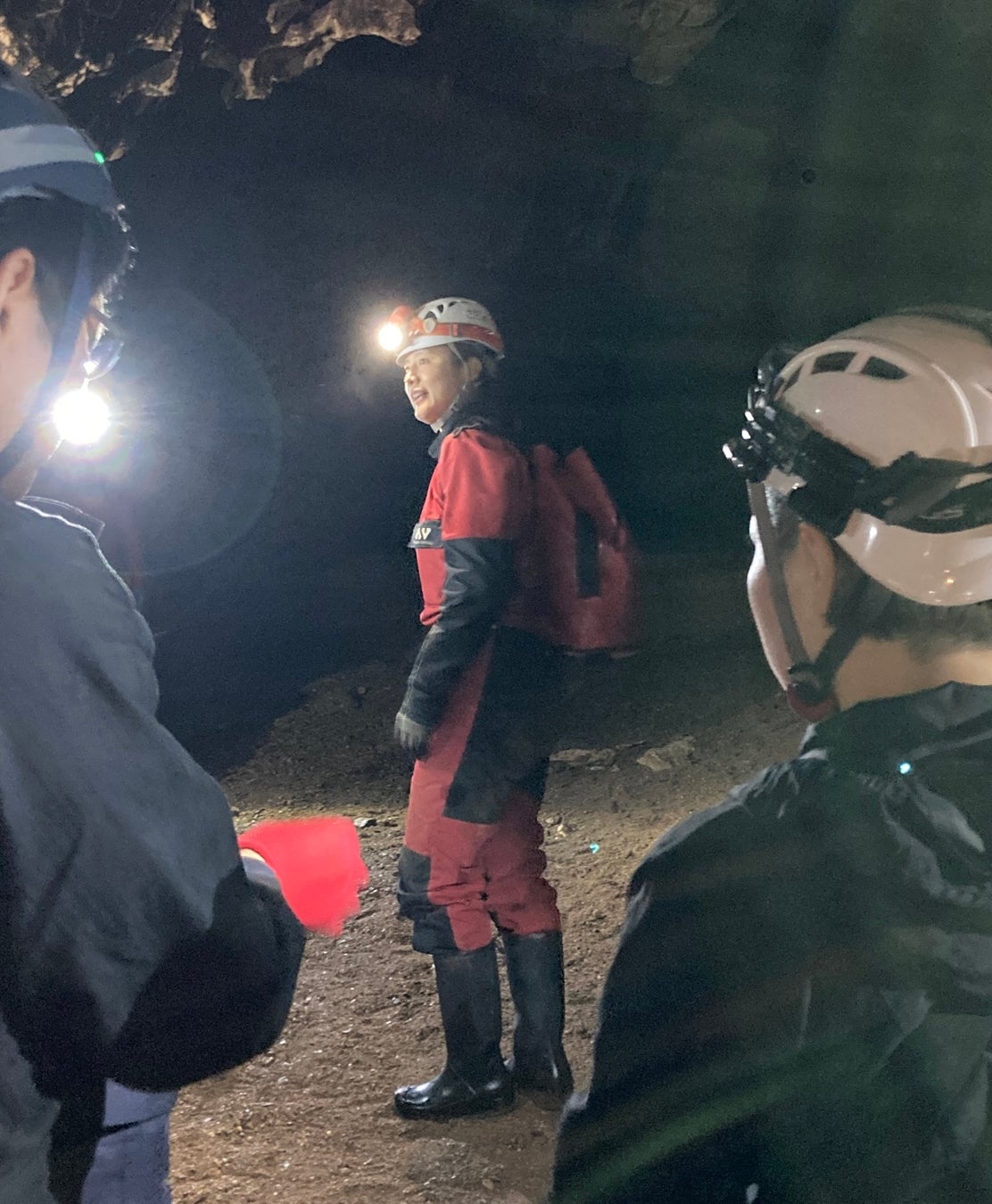定野さんは美祢市観光商工部観光政策課に所属し、秋芳洞のケイビングガイドとして働いています。