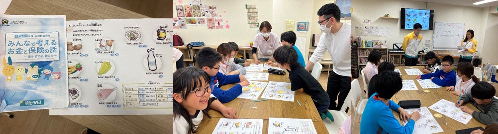 イベントでは、ハッピーキッズスペースみんと第3東川口に通う生徒が、明治安田生命のオリジナルテキストを使って、契約・お金の使い方・計画的な金銭管理・持続可能な暮らし等について、クイズを交えながら楽しく学びました。