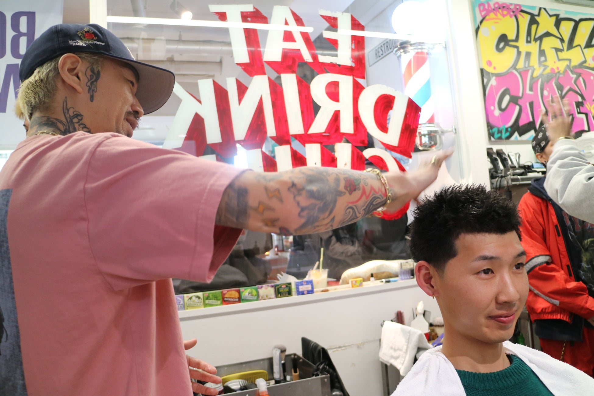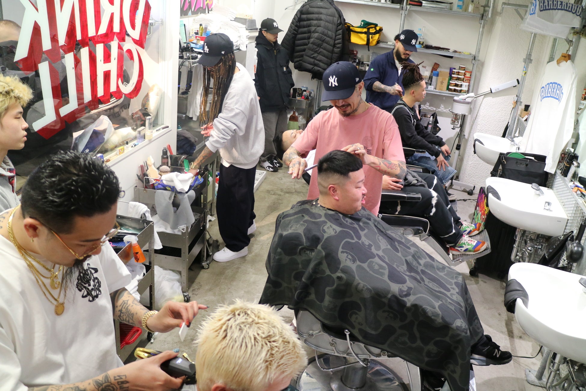 月曜日定休日のCHILL CHAIR(代表:仁藤洋平)のご厚意により吉祥寺店をお借りし、4席横並びのシートに全国から有名BARBERを招聘いたしました。