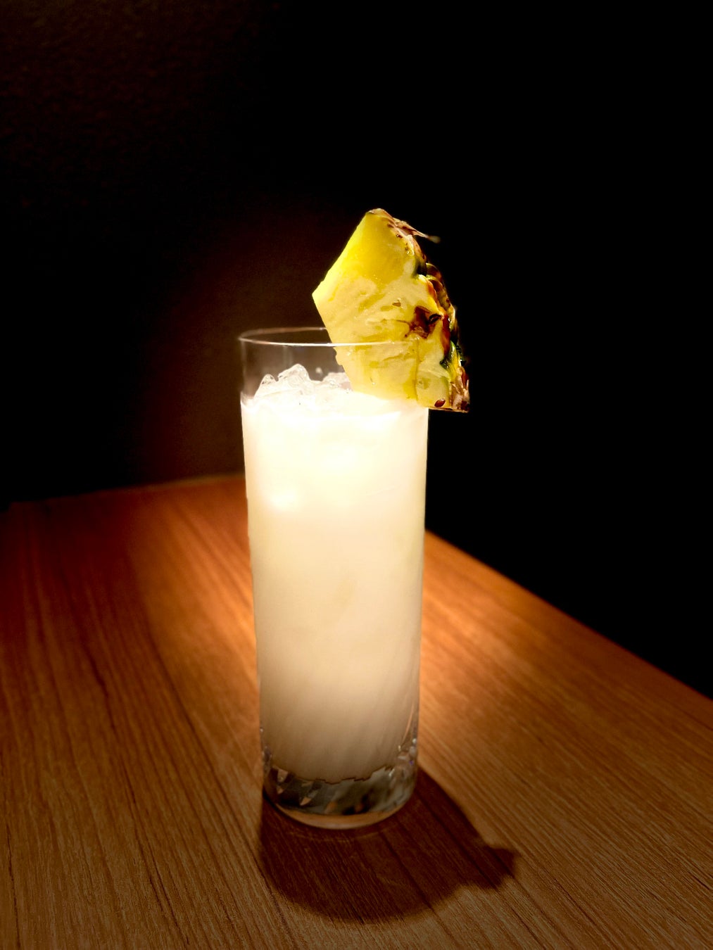 ホワイトラムとパイナップル、そのどちらとも相性の良いどぶろくを、ココナッツジュースの代わりに使用しています。粘度があるどぶろくはシェイクすることでエアを含み、口当たりも優しいカクテルに仕上がります。本家のピニャコラーダよりも優しく、繊細な「和カクテル」。暖かくなってきたこれからの季節にぴったりです。