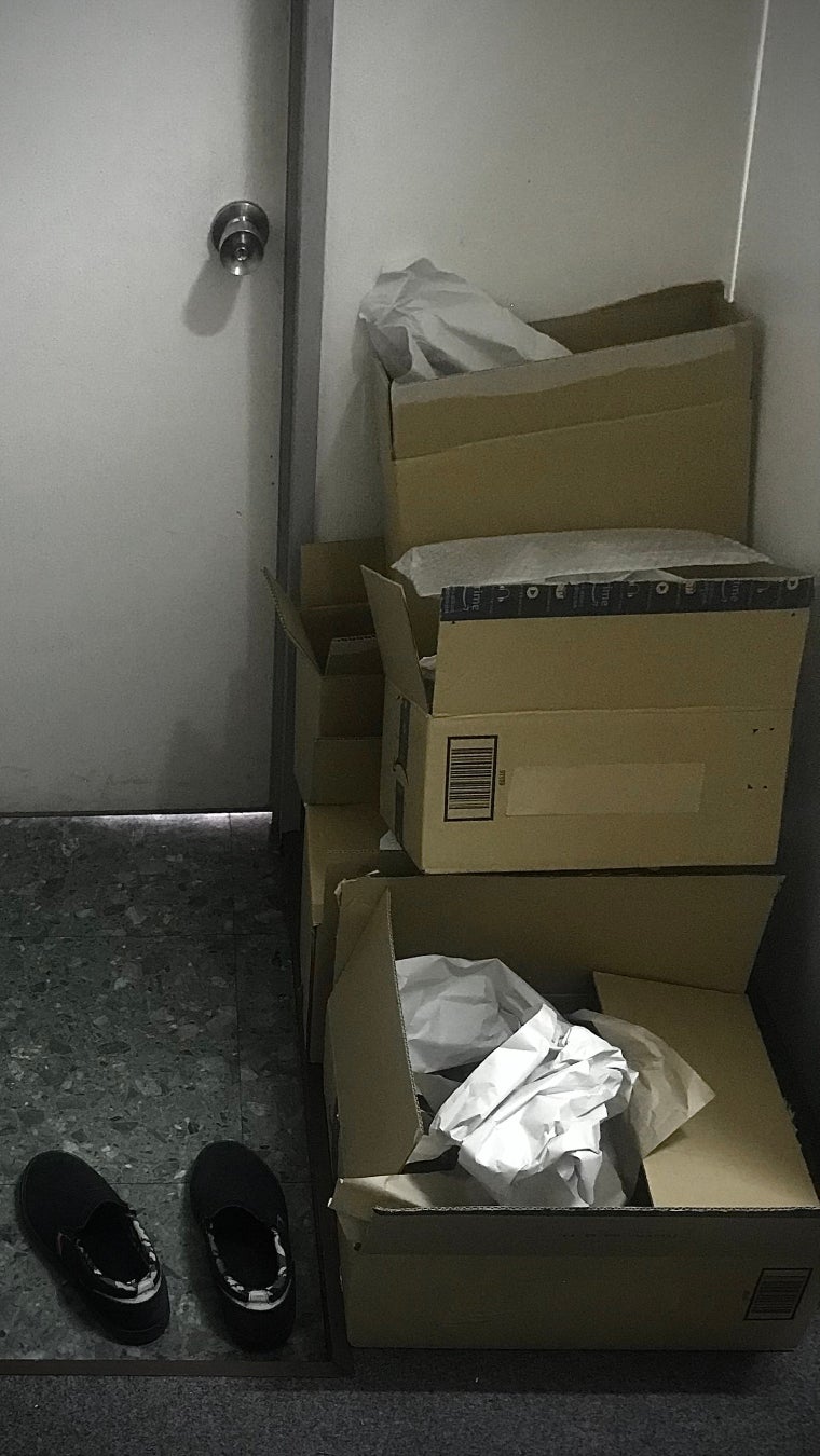 倒れてくるダンボール