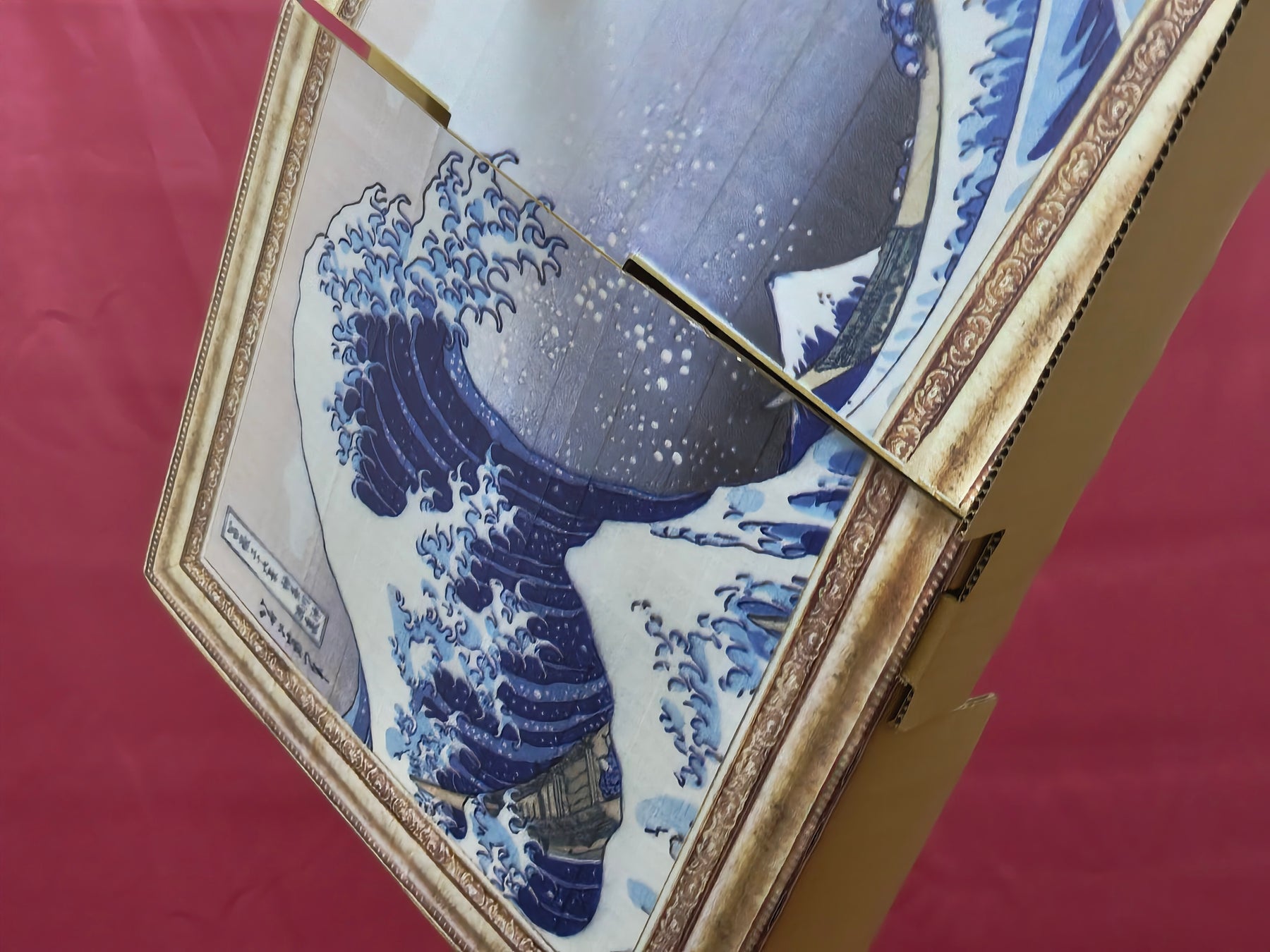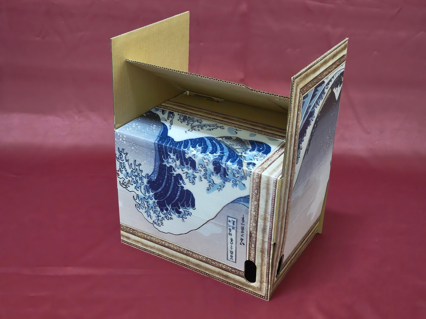 アートな自立スタンド・片手で持ち運び・ダンボール箱 3つの側面がある不思議なダンボール。新しい価値観をバーチャル大阪パビリオンを通じ世界に発信 吉村洋文大阪府知事定例会見にて1月15日発表