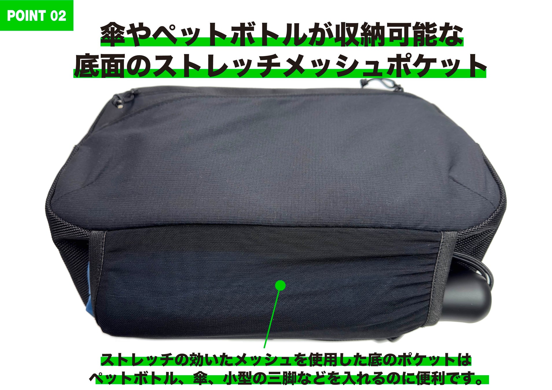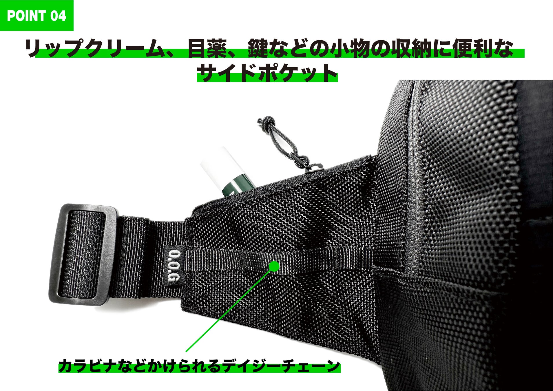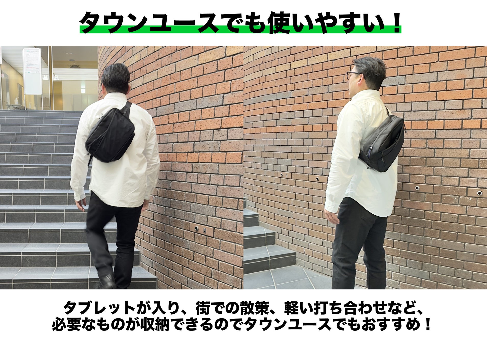 ちょっとした外出時にバックパックだと大きすぎる、サコッシュ、ポーチでは小さすぎる、そんなときに外出に時に困らない十分なアイテムを収納できるバッグが欲しい、そんな思いからデザインされたバッグ。