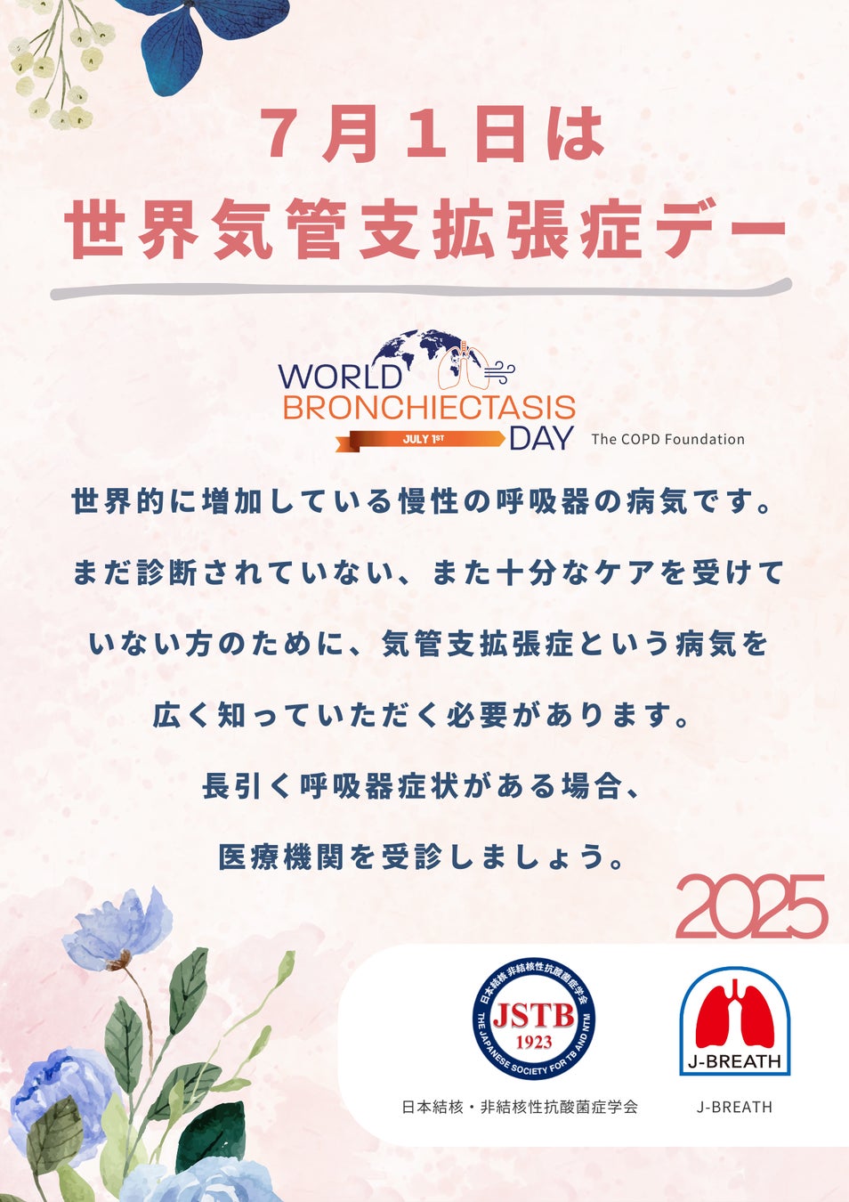 7月1日は「世界気管支拡張症デー(World Bronchiectasis Day)」です。この日は、気管支拡張症の啓発と患者支援の重要性を国際社会と共有する機会として設けられました。