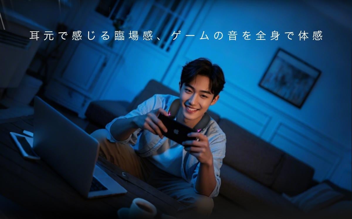 ~Earaku“思いやり”シリーズ第3弾。音漏れを最大限に抑えつつ、イヤホンにはない臨場感と快適さを演出する画期的なネック型ゲームスピーカー~