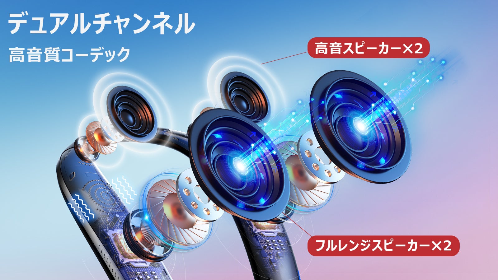 そんな、自分のみならず周囲へも思いやり満載の遊音から聞こえる音は、臨場感あふれる高品質な音。デュアルチャンネル技術を採用し、左右からの立体的な音を再現することで、臨場感を演出しています。