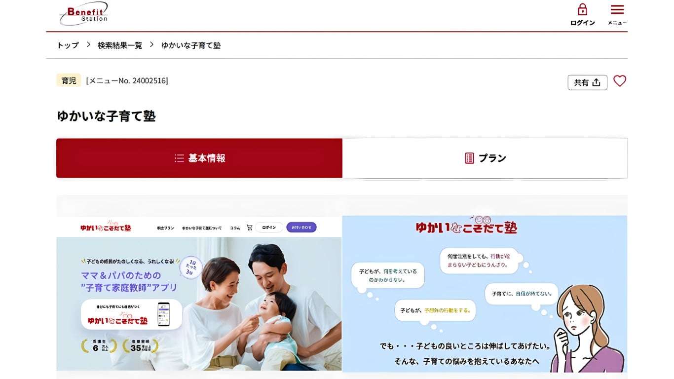 今回の業務提携により、「ゆかいな子育て塾」は、ベネフィット・ワンが提供する総合福利厚生サービス「ベネフィット・ステーション」を通じて、会員企業の従業員である親御さんが手軽に利用できるようになります。これまで子育てに悩んでいた多くの働く親御さんが、時間や場所を選ばずに、専門家によるサポートを受けられる機会が広がります。