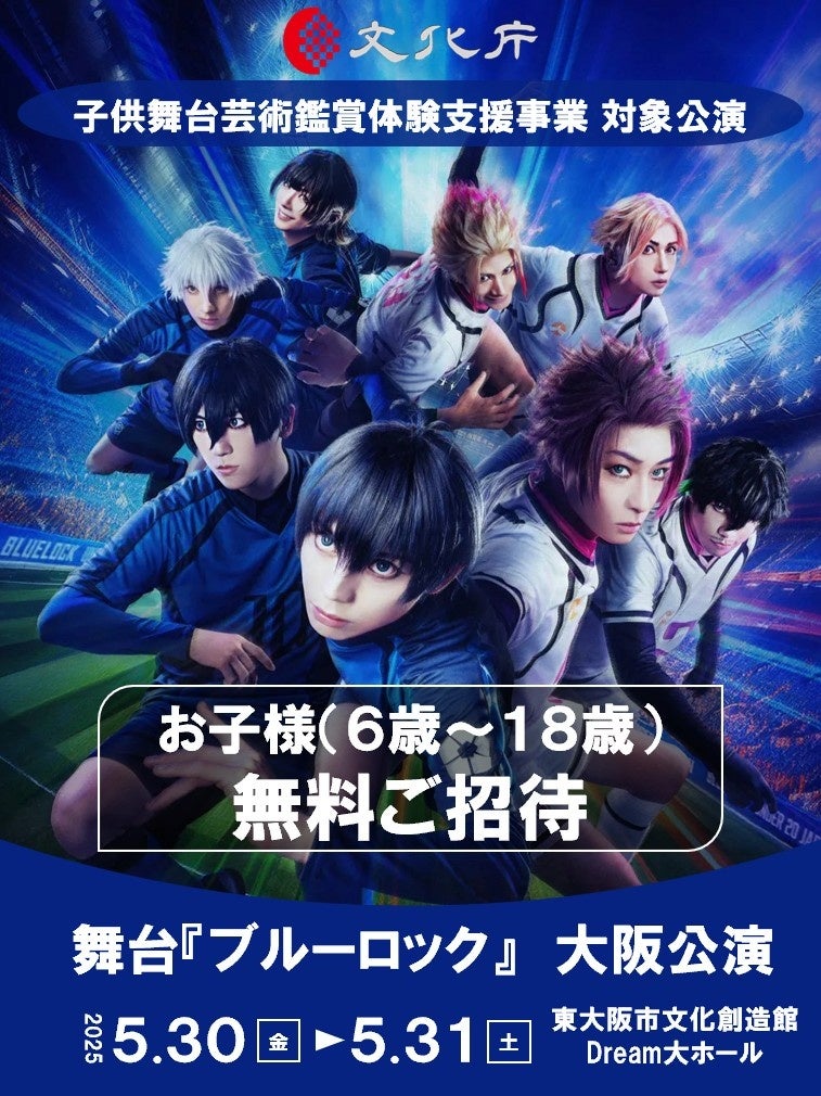 2025年5月に上演される舞台『ブルーロック』4th STAGE大阪公演が、文化庁の「子供文化芸術活動支援事業」の対象公演として採択されました。6才から18歳のお子様を無料でご招待いたします。