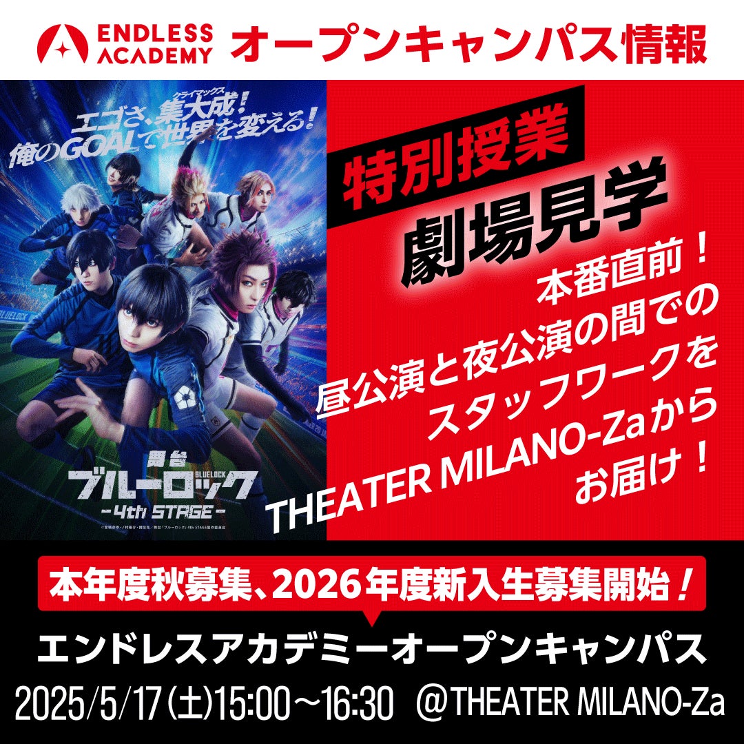 舞台『ブルーロック』4th STAGE期間中には東京公演、大阪公演でそれぞれ劇場でスタッフワークを見学できる総合芸術学校「エンドレス・アカデミー」のオープンキャンパスも実施します。