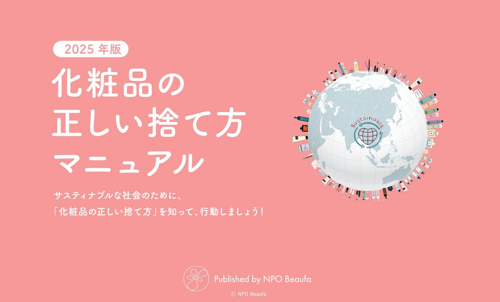 この活動の中で今回、「化粧品の正しい捨て方」を広く生活者・生産者・販売者の皆様に知っていただきたく、また、美容を通じてサステナブルな社会づくりへの意識をより高めてほしいという願いのもと、以前より当団体で作成していた「化粧品の正しい捨て方マニュアル」を2025年版としてリニューアルいたしました。
