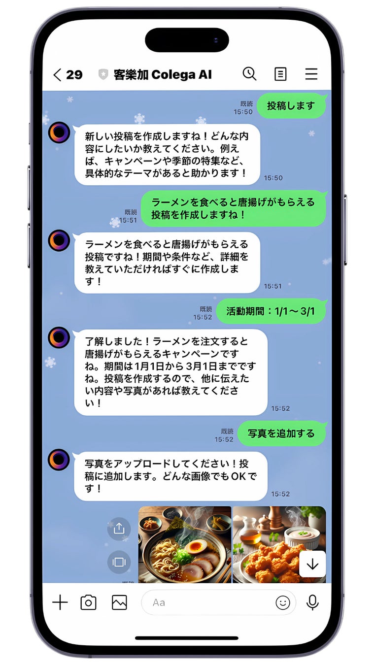 STEP1:店舗で撮影した画像を「Colega AI」に投稿