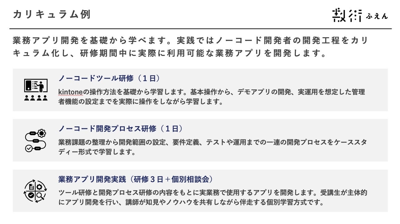 「ふえんノーコード市民開発研修プログラム」は、DXの成果を無理なく生み出すために設計されたオンライン研修です。