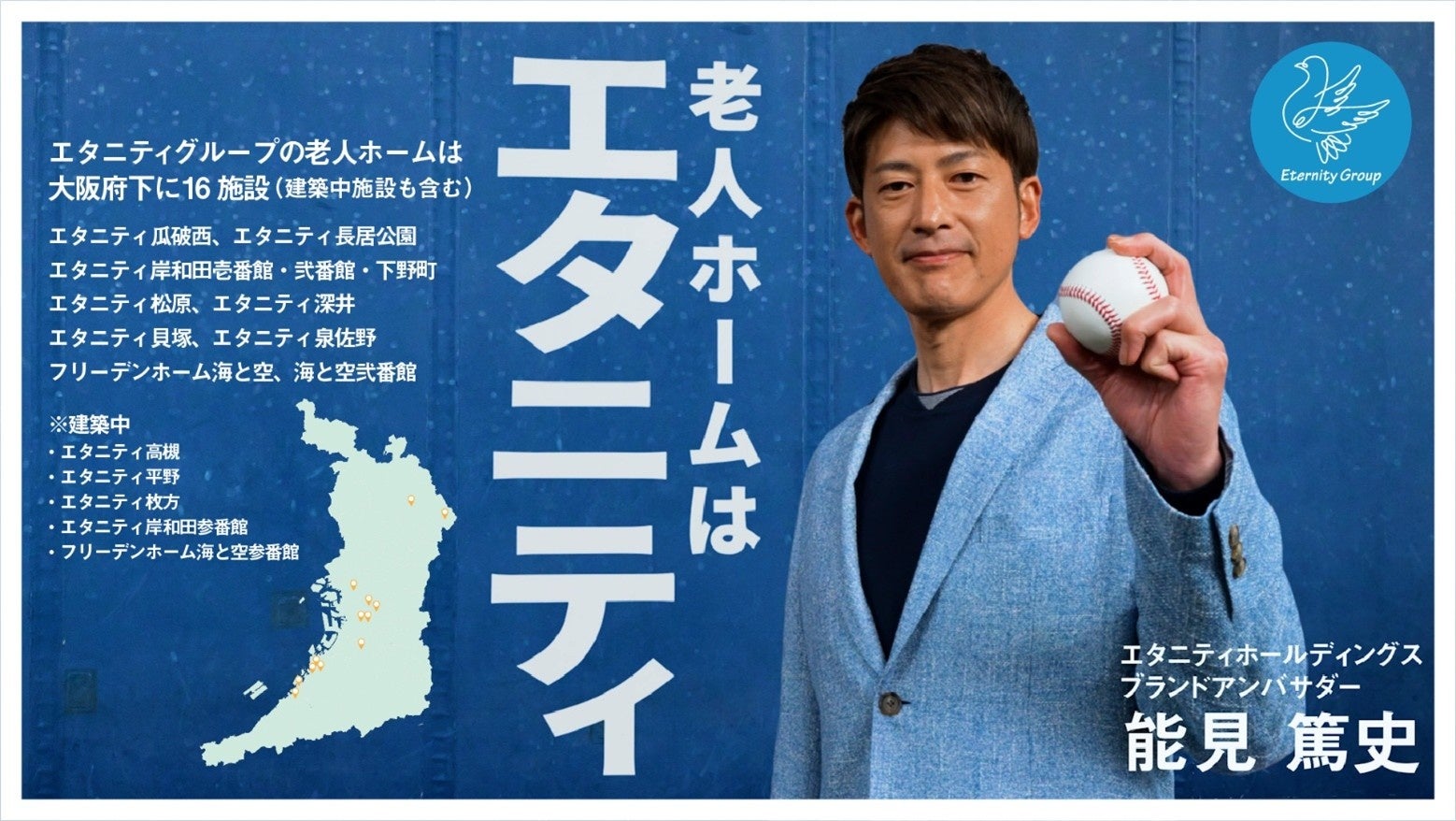 「老人ホームはエタニティ」でおなじみのエタニティグループは、ブランドアンバサダーを務める野球評論家の能見篤史さんが出演するテレビCMを、2025年7月3日(木)から放映開始します。