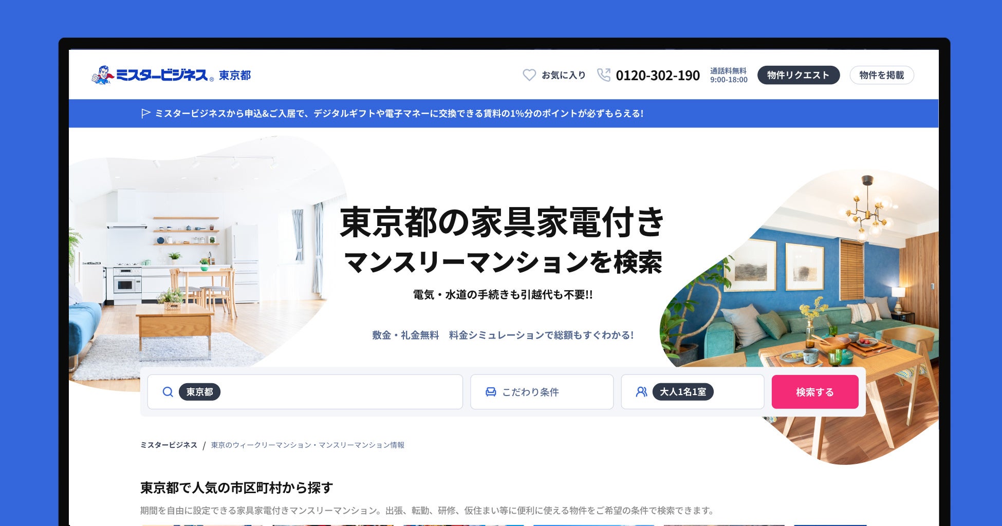 進化するマンスリーマンション市場――「ミスタービジネス」がポータルサイトを全面刷新&新たなポイントサービスを開始!