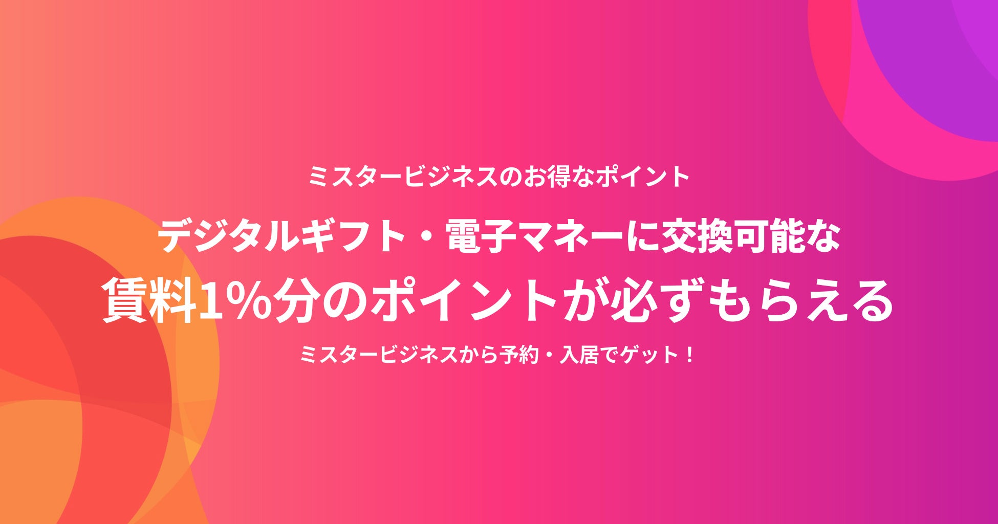 ポイントの獲得は「ミスタービジネス」サイトから問合せ且つステイコネクトを利用した申込・入居に限る。