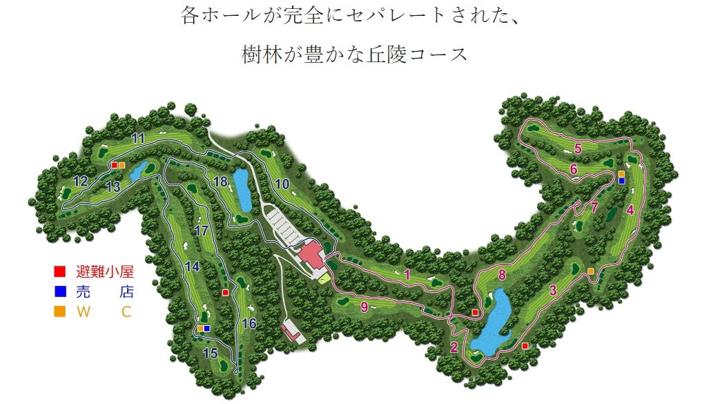 OUTコースは豪快な打ち下ろしやドッグレッグホールなどの変化に富んだコースです。
