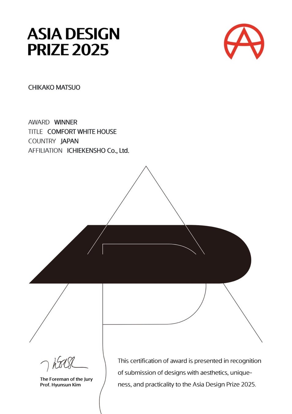 株式会社イチエ建匠(所在地:岡山県岡山市、代表取締役:松尾 智佳子)が手がけた「緑道と木窓」の家が、「Asia Design Prize 2025」において入賞しました。