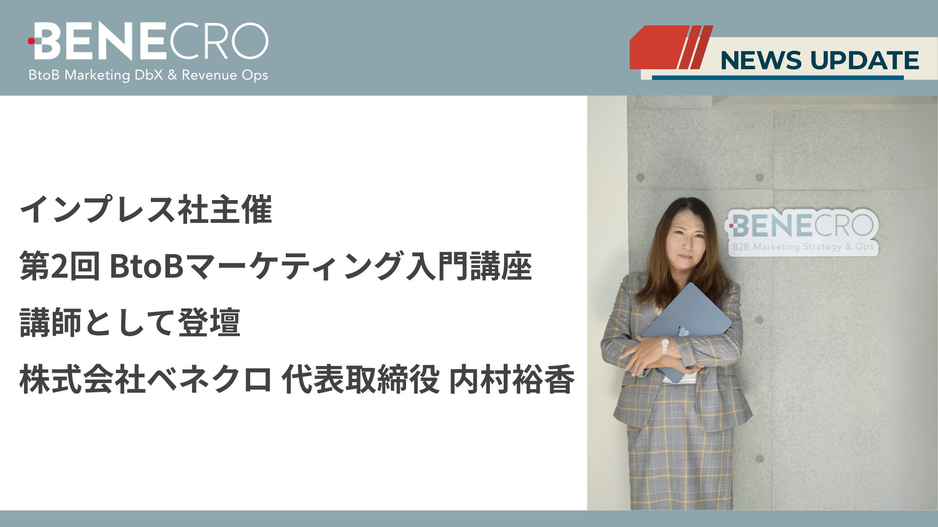 【登壇情報】株式会社ベネクロ代表 内村裕香、インプレス主催「第2回 BtoBマーケティング入門講座」講師として登壇