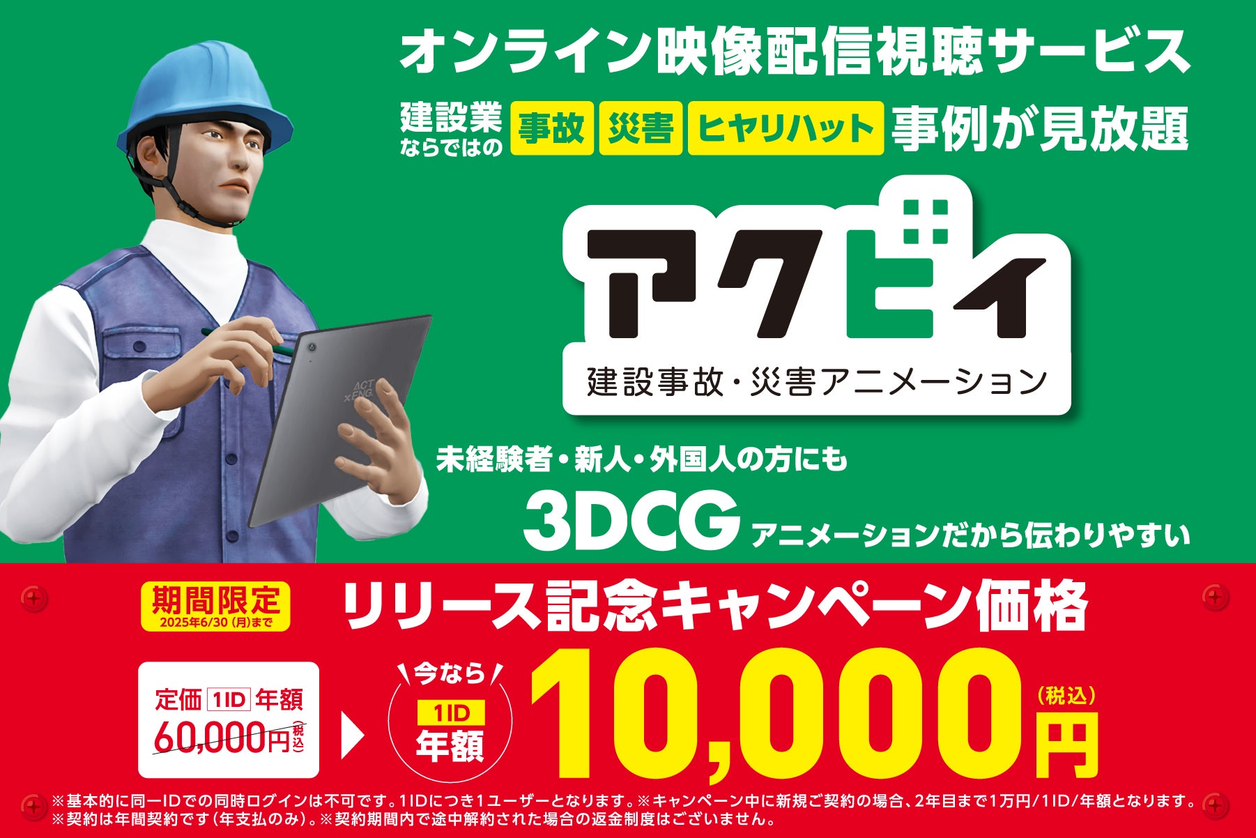 建設業界に特化した人材派遣・紹介会社である株式会社アクトエンジニアリング(本社:東京都港区、代表取締役社長:石井春海)は、工事現場における事故ゼロ・災害ゼロの実現を目指し、これまでDVD教材として提供してきた安全教育コンテンツを、オンラインで視聴可能な映像配信サービス「アクビィ(Acvie)」として2025年4月1日より提供開始しました。
