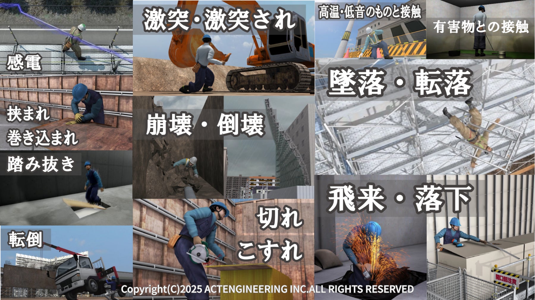 事故発生時には詳細な報告書の作成が義務づけられていますが、現場経験の少ない新人や日本語に不慣れな外国人労働者にとっては理解が難しく、教育の伝達に課題がありました。こうした背景を受け、アクトエンジニアリングは誰にでも伝わる安全教育を目指し、事故・災害の“見える化”を図る3DCGアニメーション映像の開発に至りました。