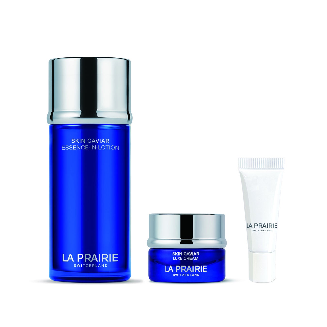 初めて〈ラ・プレリー〉を使う方におすすめの化粧液SC エッセンス-イン-ローションとともに、クリーム、目もと用美容液のサンプルをセットに。