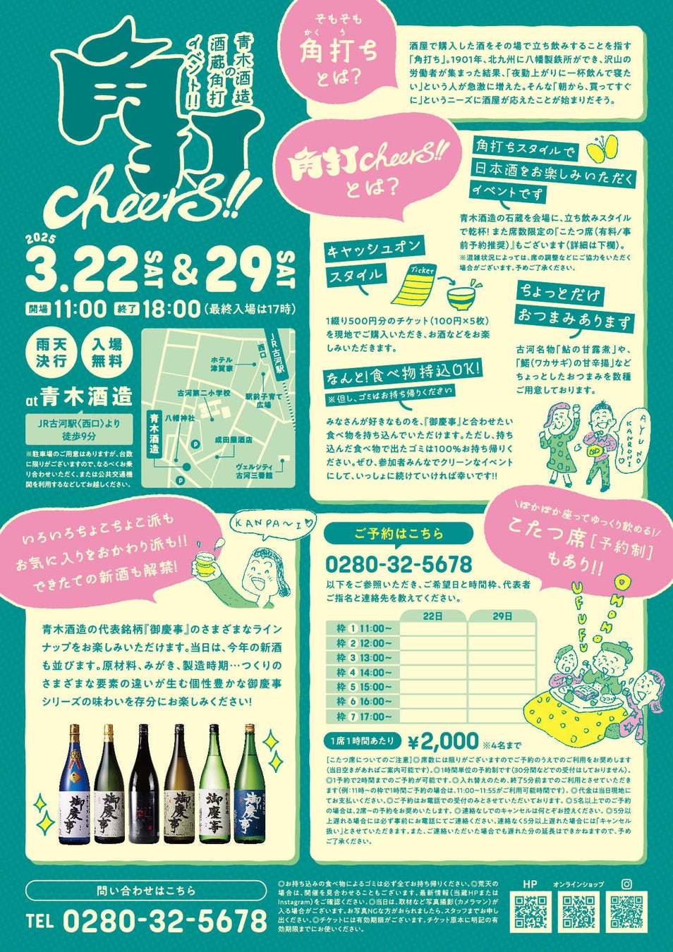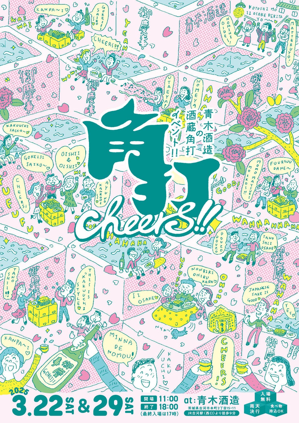創業194年の老舗酒蔵 青木酒造株式会社(茨城県古河市)は、出来立ての「新酒」が堪能できる、角打ちスタイルの蔵開きイベント「角打Cheers!!」開催します。開催日 2025年3月22、29(土)