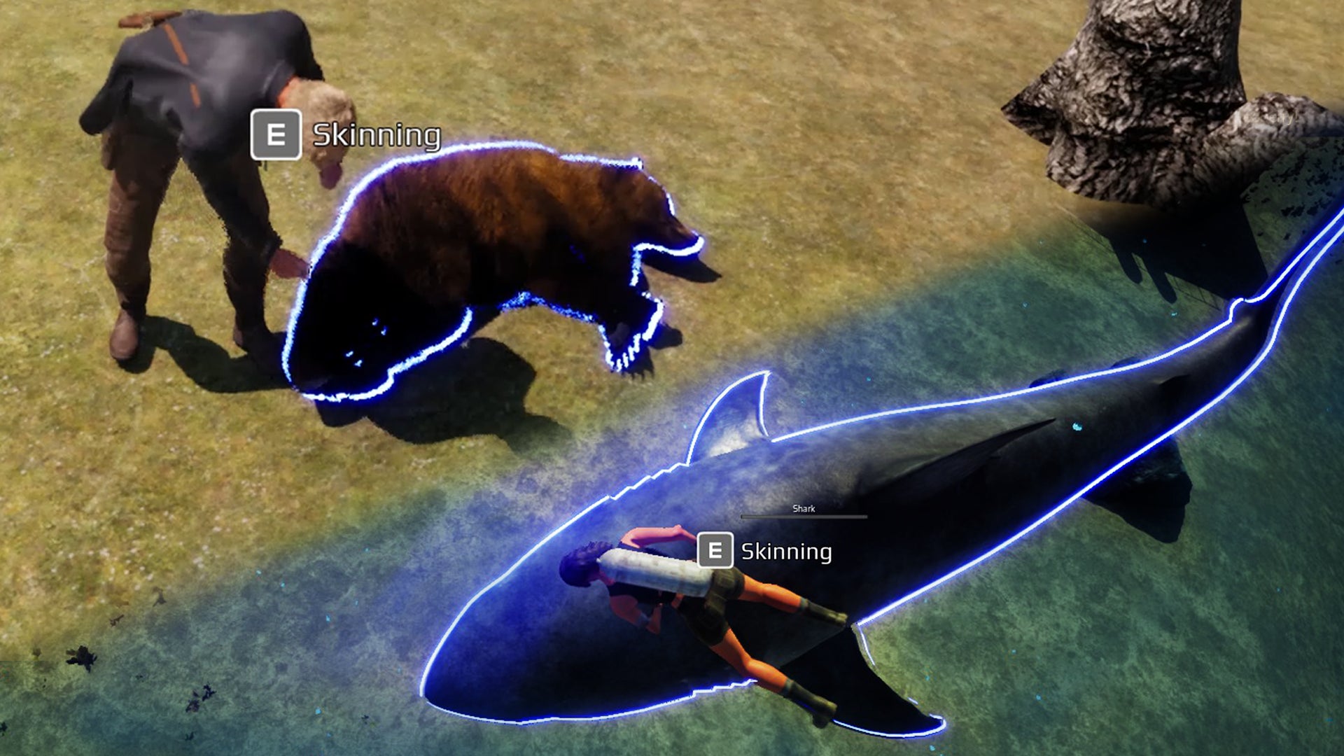 陸上、海中どちらでも拠点の建築が可能です。資材の保管や野生動物から身を守るほか、海中では酸素補給ポイントを設置することで長時間の探索が可能になります。